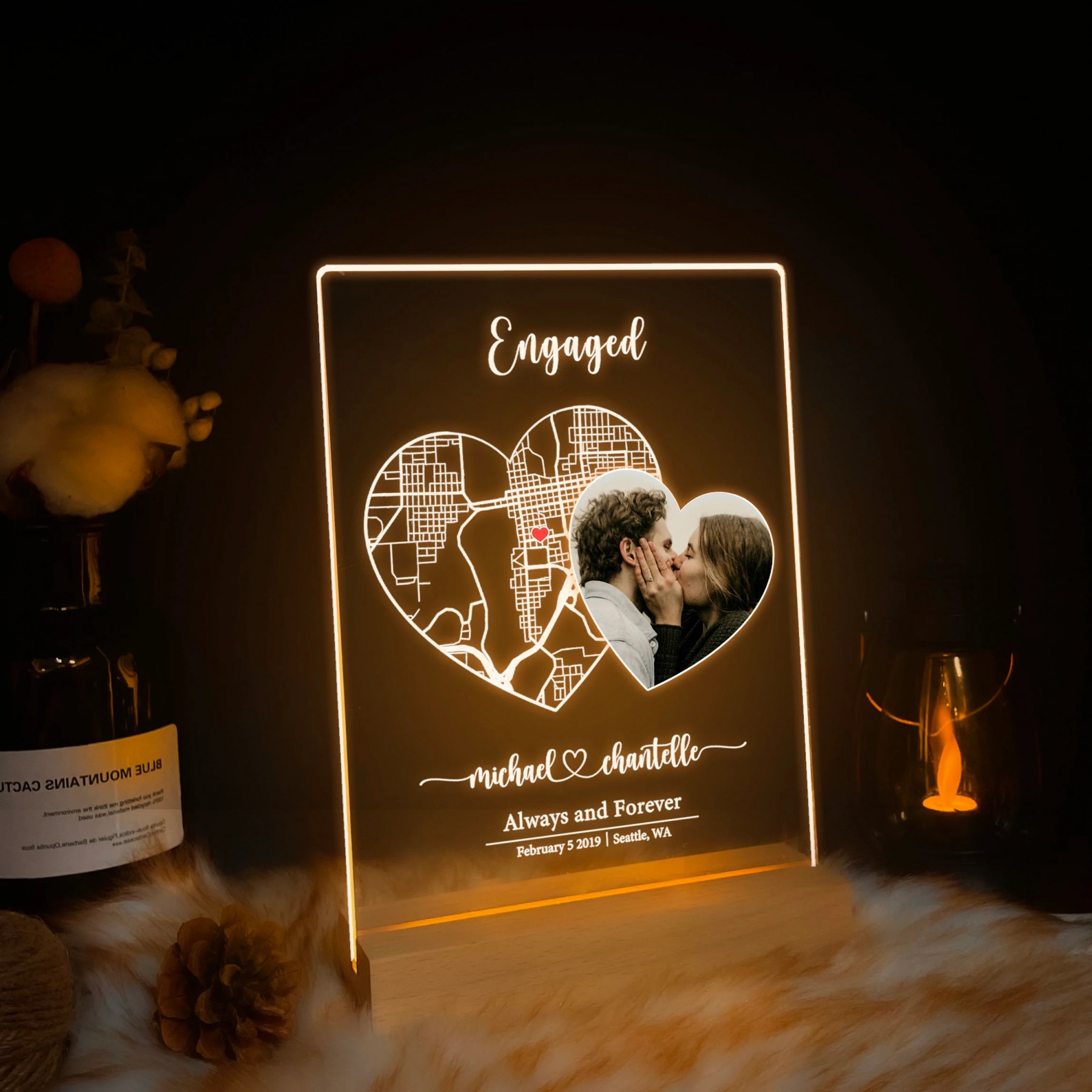 Custom Where She Said Yes Acrylic Map Night Light for Couple
