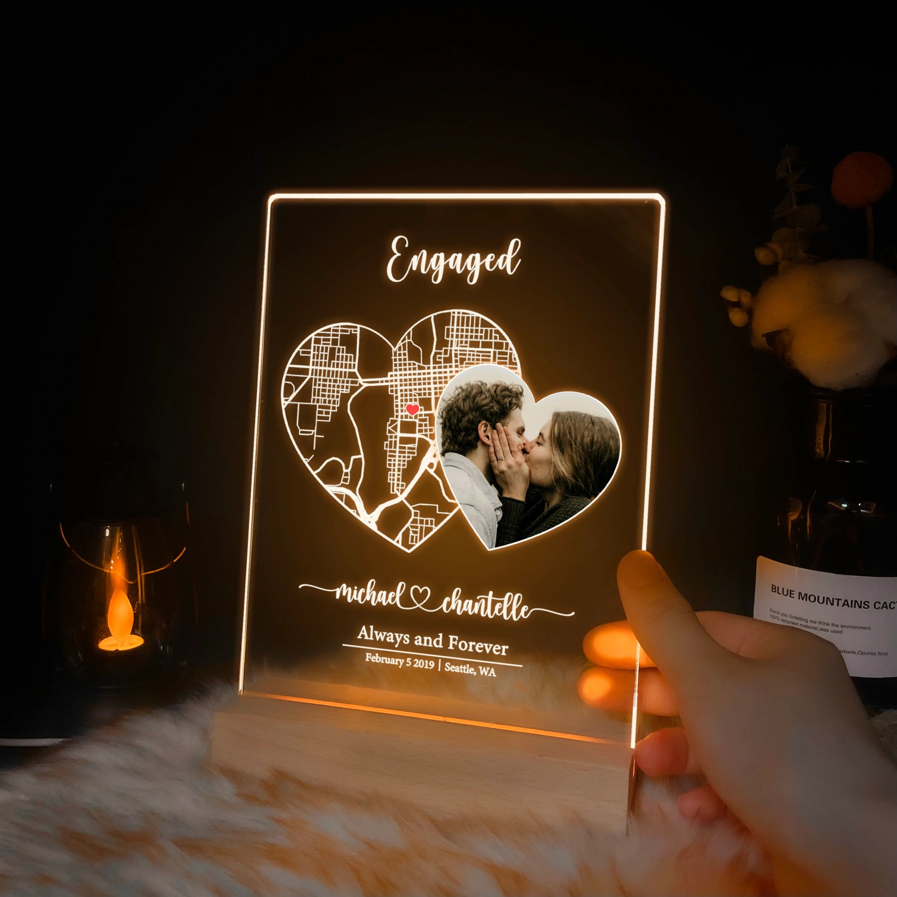 Turn the place where your love story began into a glowing keepsake. This personalized acrylic map night light captures the exact location of your most meaningful moment, whether it’s your first date, engagement, wedding, or any milestone worth remembering. With a warm wooden LED base and crystal clear acrylic, it adds romance and emotion to any room while preserving memories that last forever.