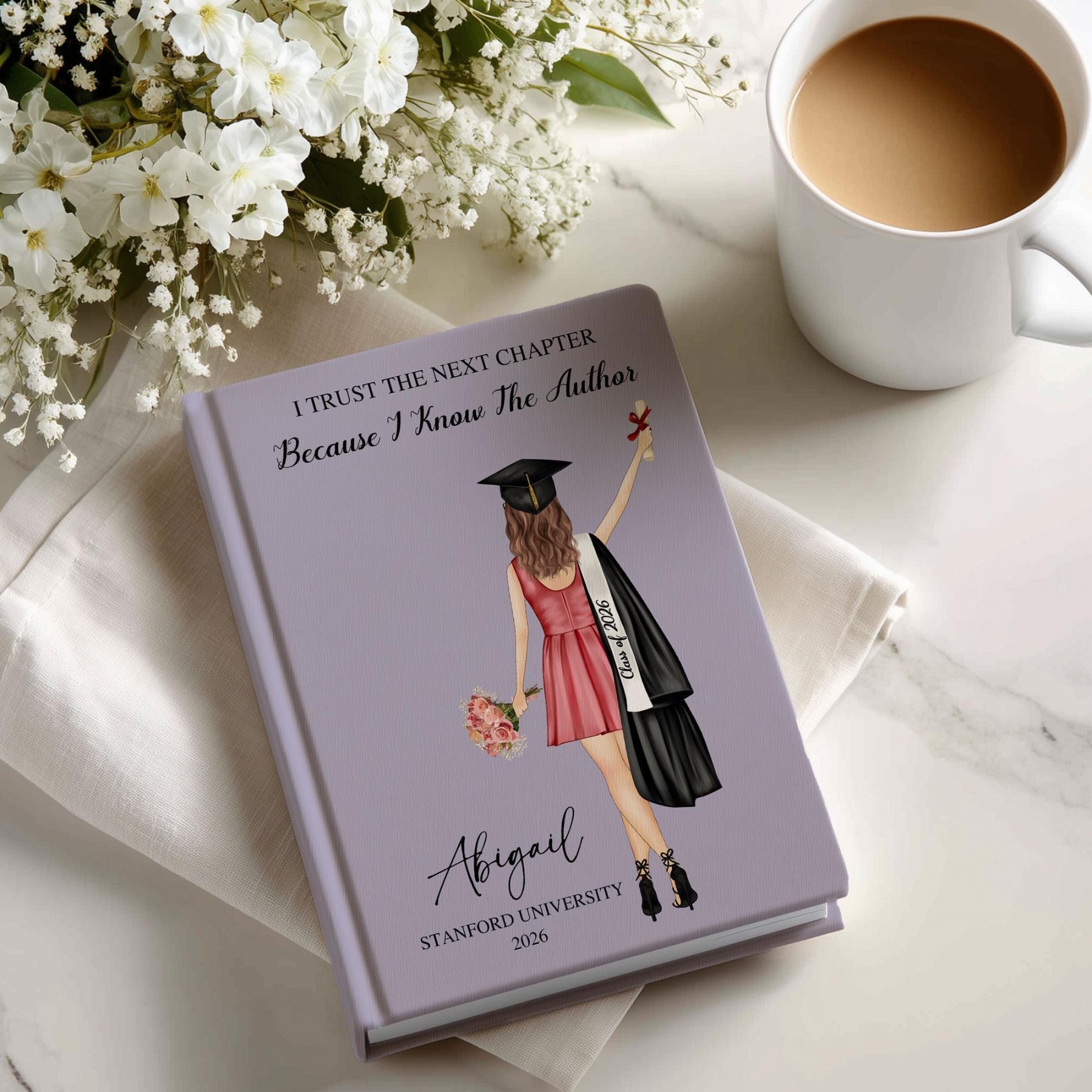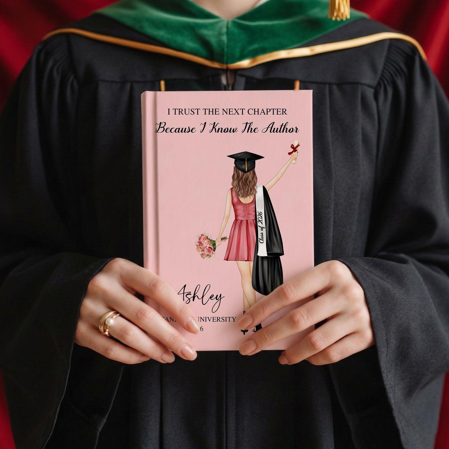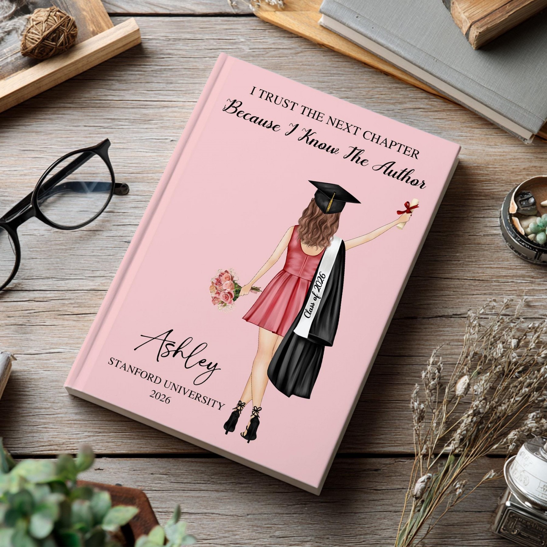 Personalized girls graduation hardcover journal — a beautiful keepsake for celebrating the Class of 2026 milestone.