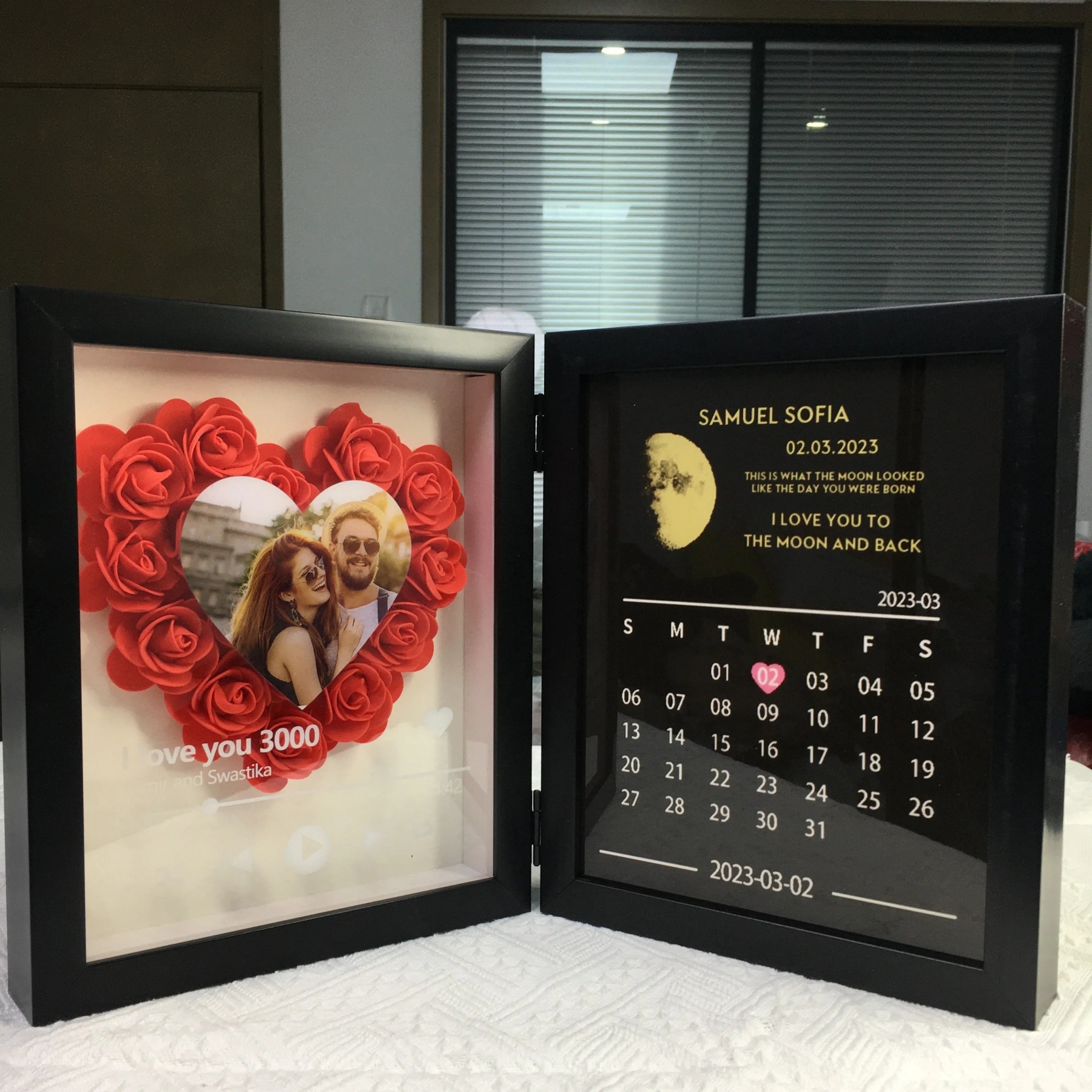 Custom Flowers Frame with Real Moon Phase for Anniversary