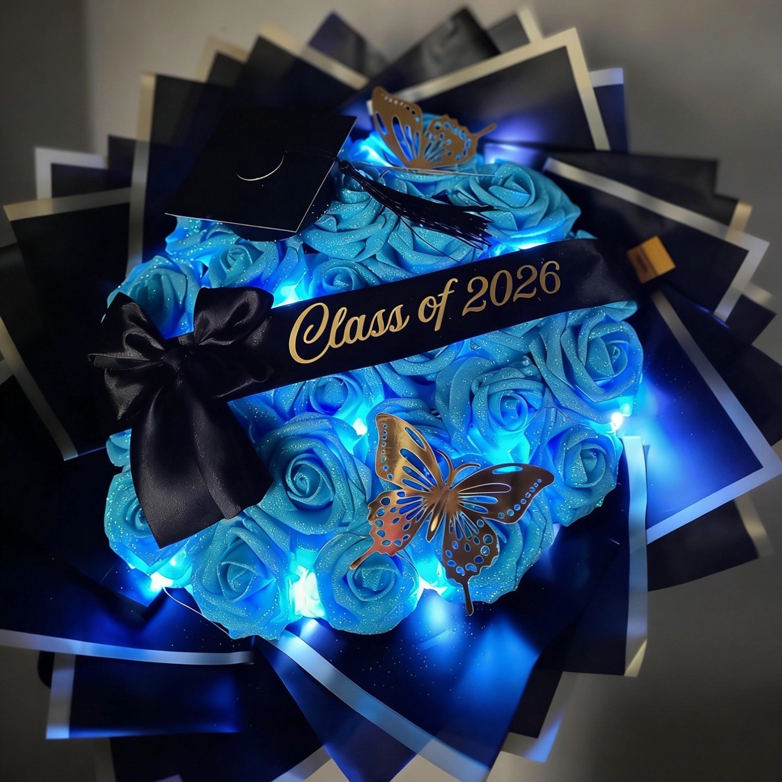 Custom Glitter Roses Graduation Bouquet: Personalized Class of 2026 Gift