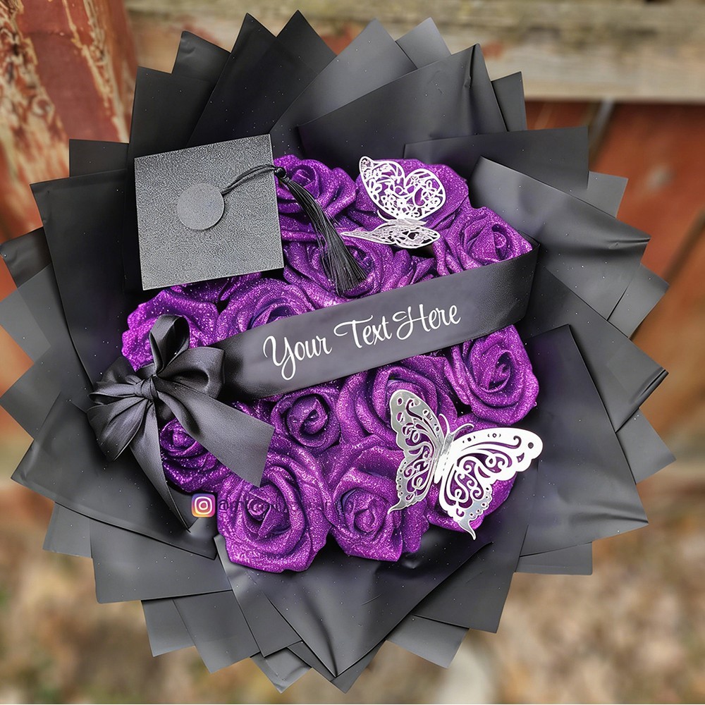 Custom Glitter Roses Graduation Bouquet: Personalized Class of 2026 Gift