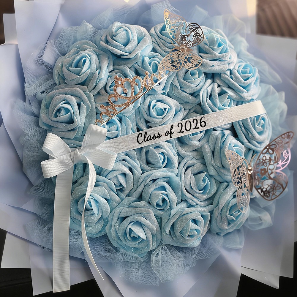 Custom Glitter Roses Graduation Bouquet: Personalized Class of 2026 Gift
