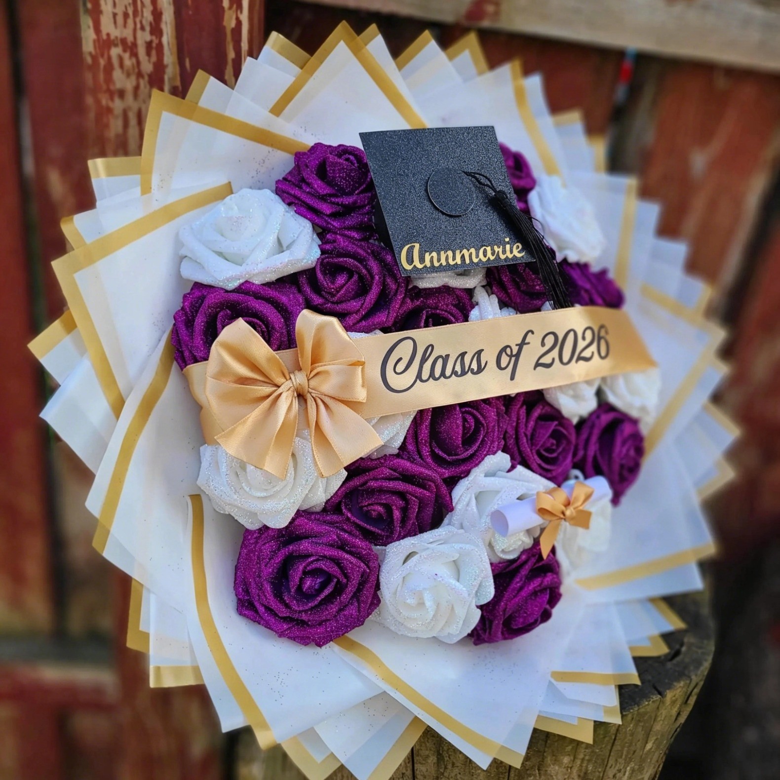 Custom Glitter Roses Graduation Bouquet: Personalized Class of 2026 Gift