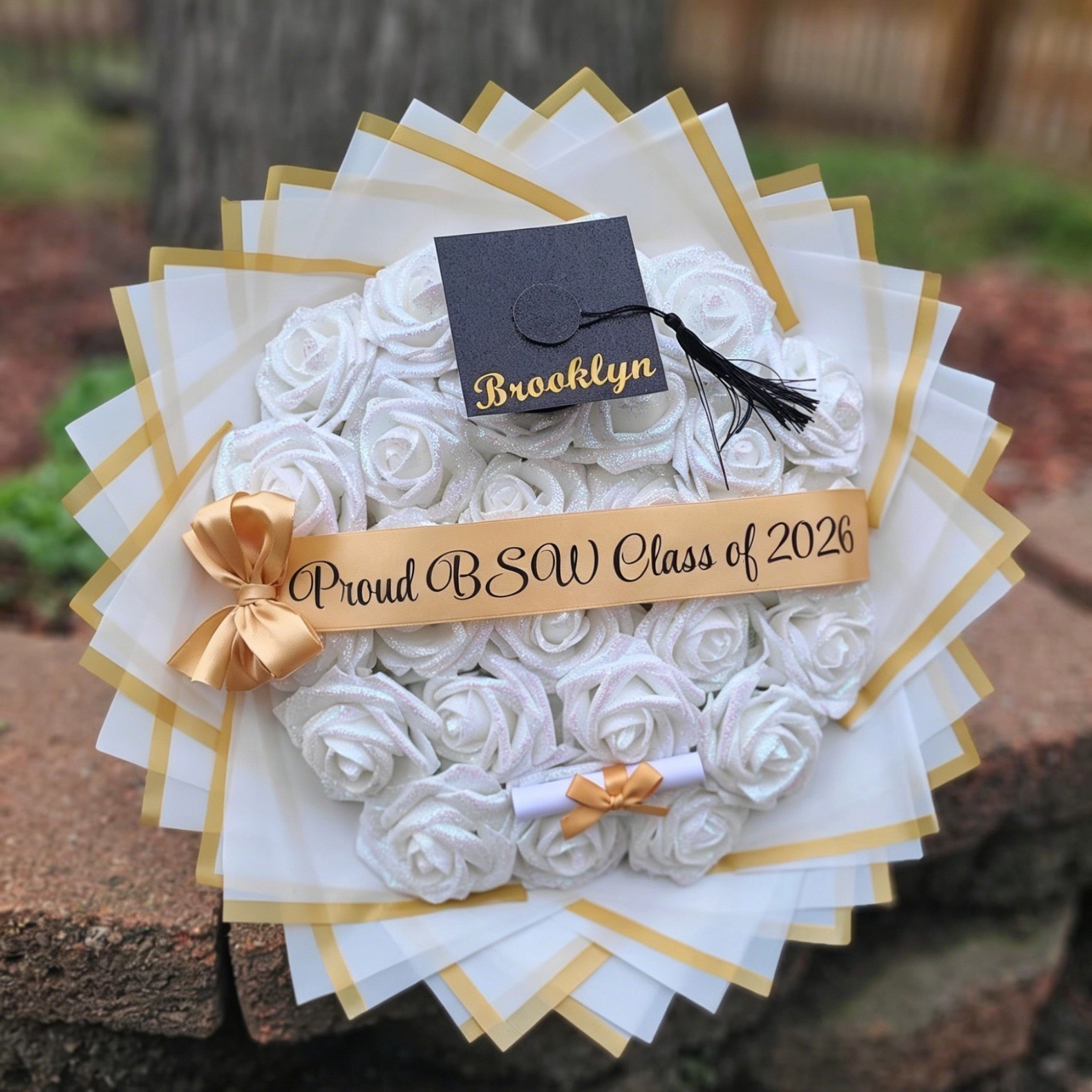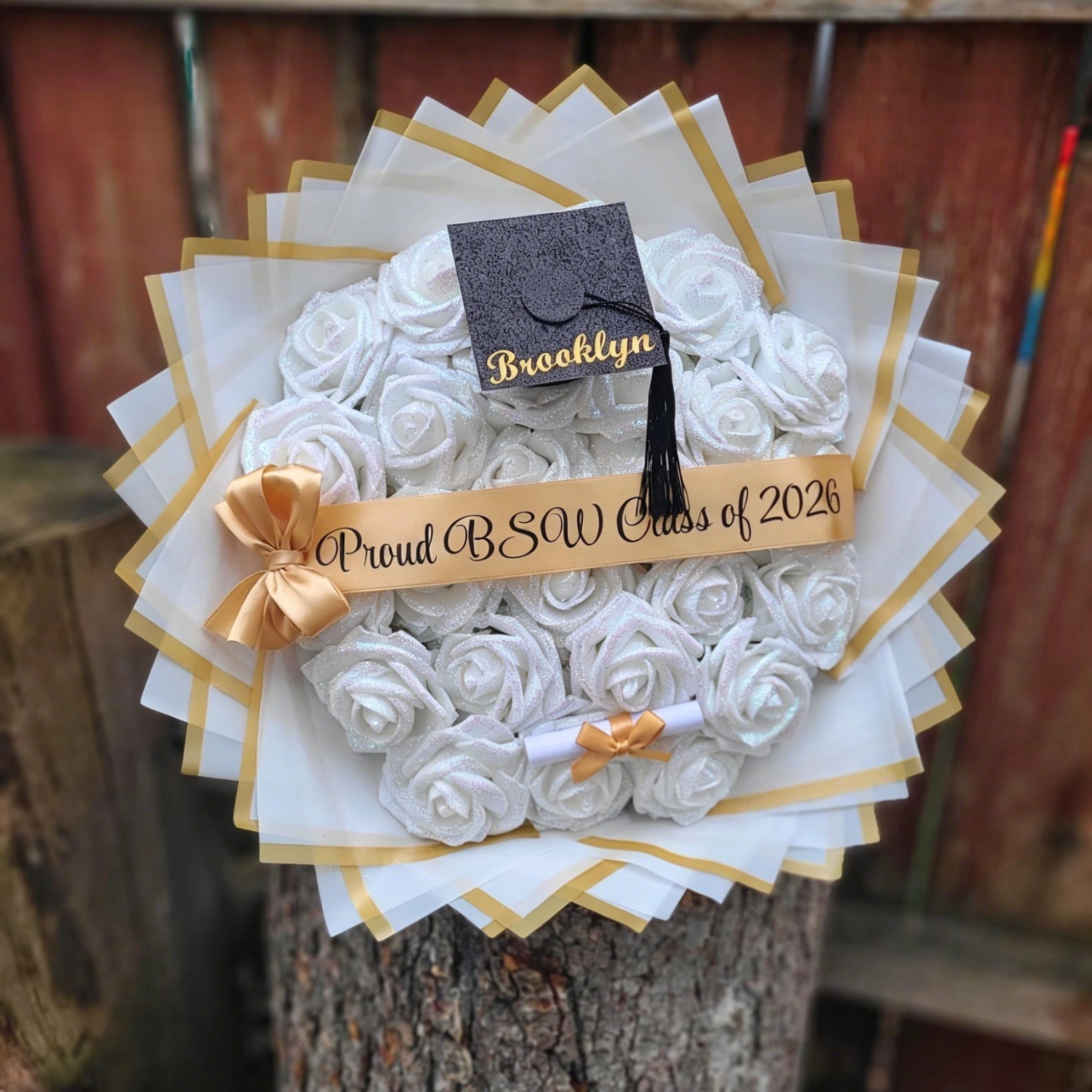 Custom Glitter Roses Graduation Bouquet: Personalized Class of 2026 Gift