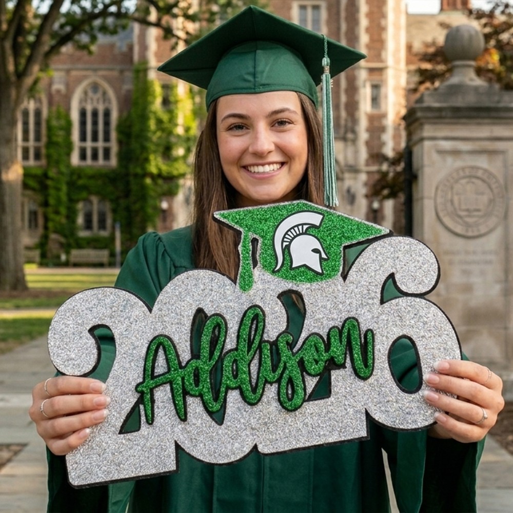 Each sign is handcrafted with smooth edges and bold lettering, creating a clean, professional look for outdoor or indoor use. Display it in the yard, at the ceremony, or as a photo backdrop — then keep it as a reminder of an unforgettable year. Custom sizing and color options available to match your school or party theme.