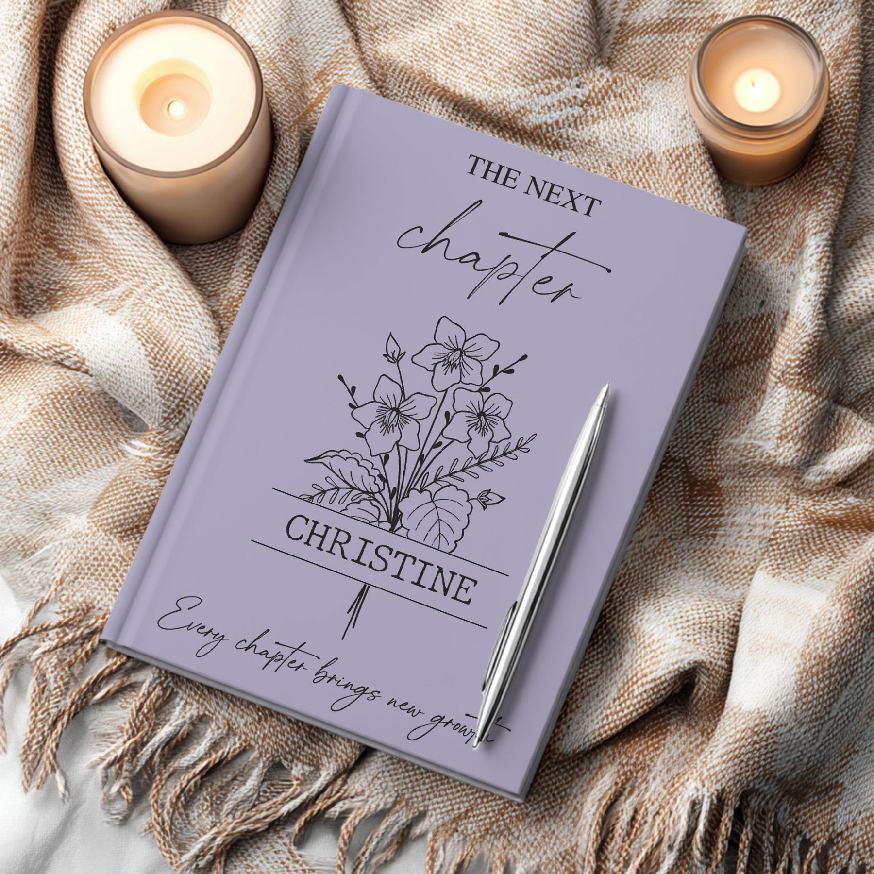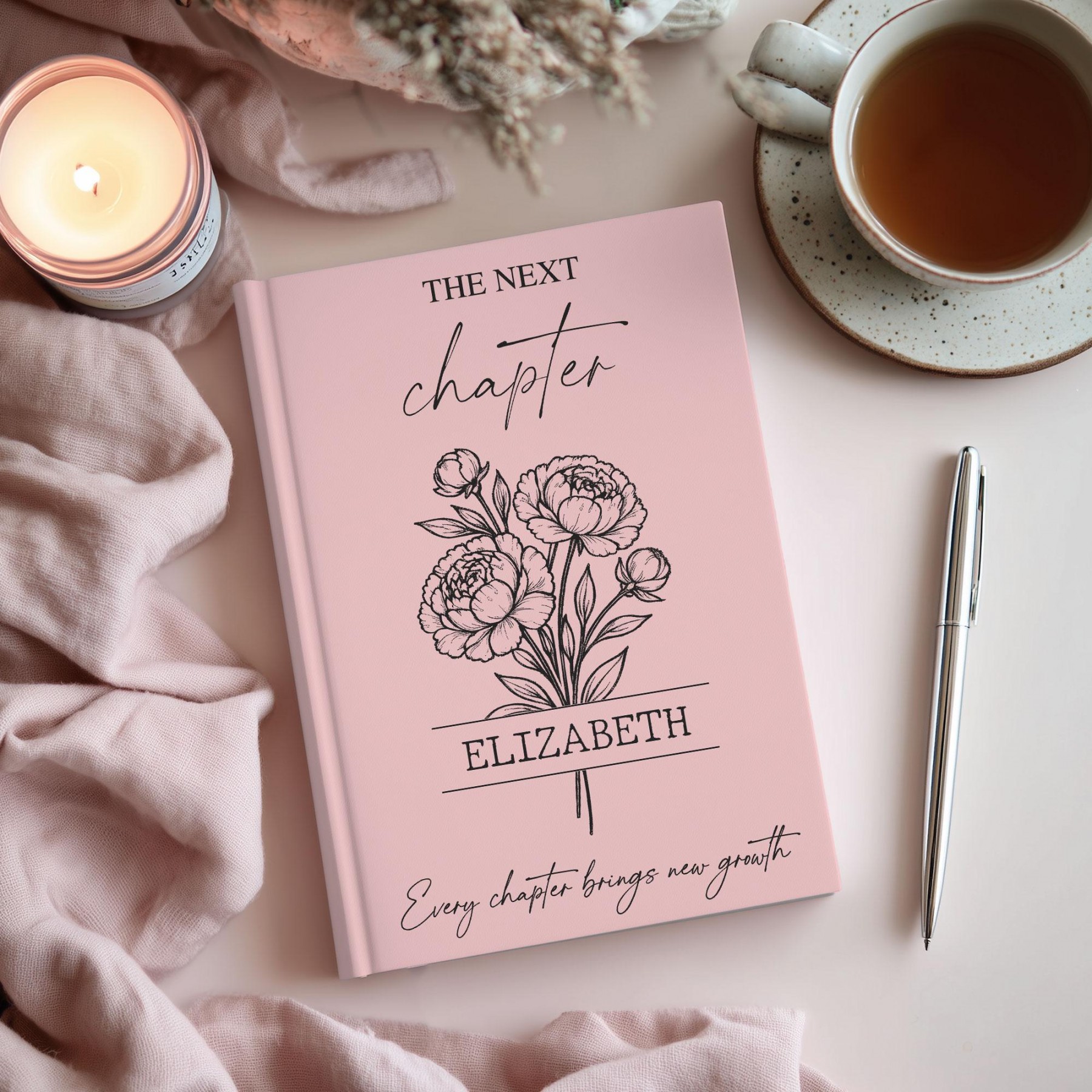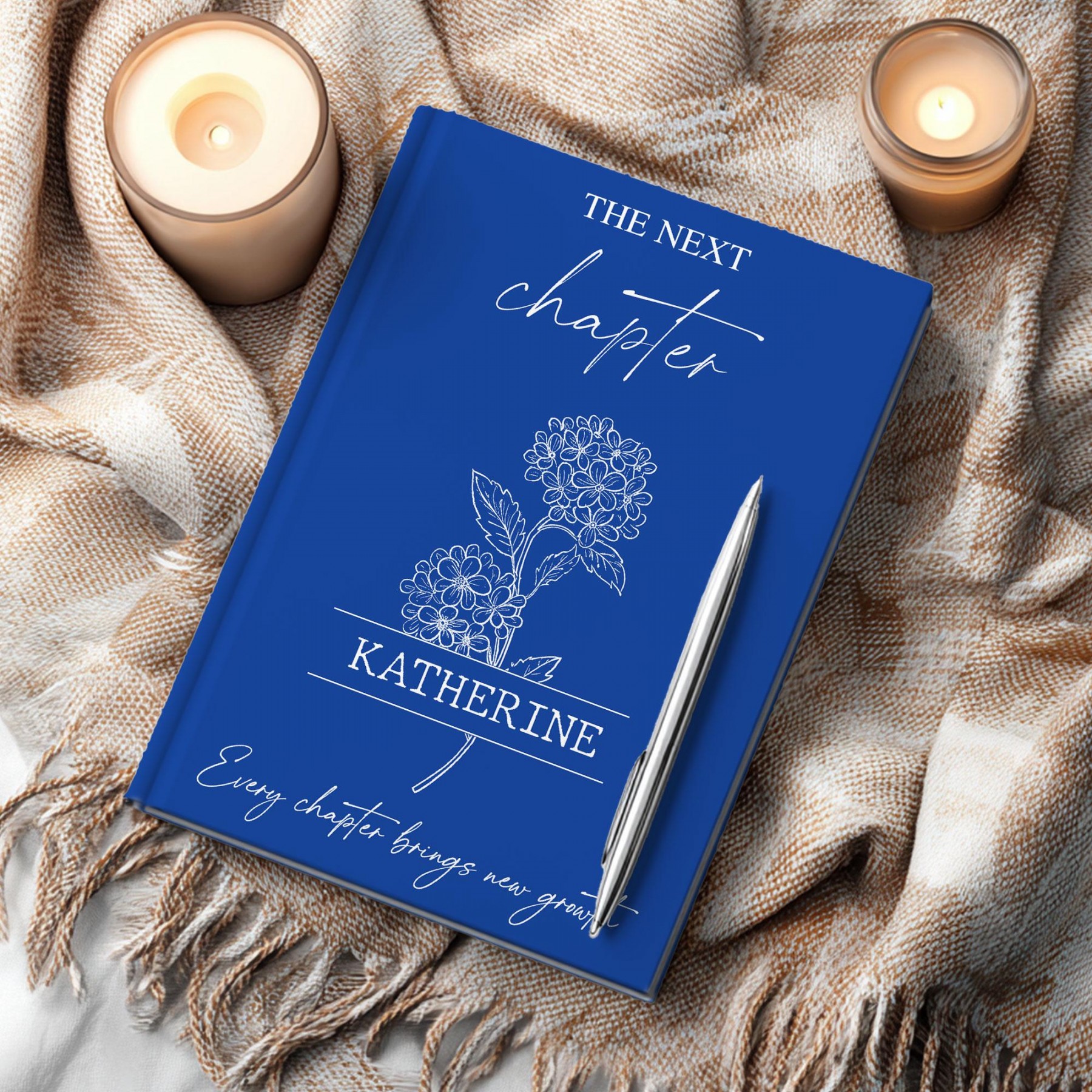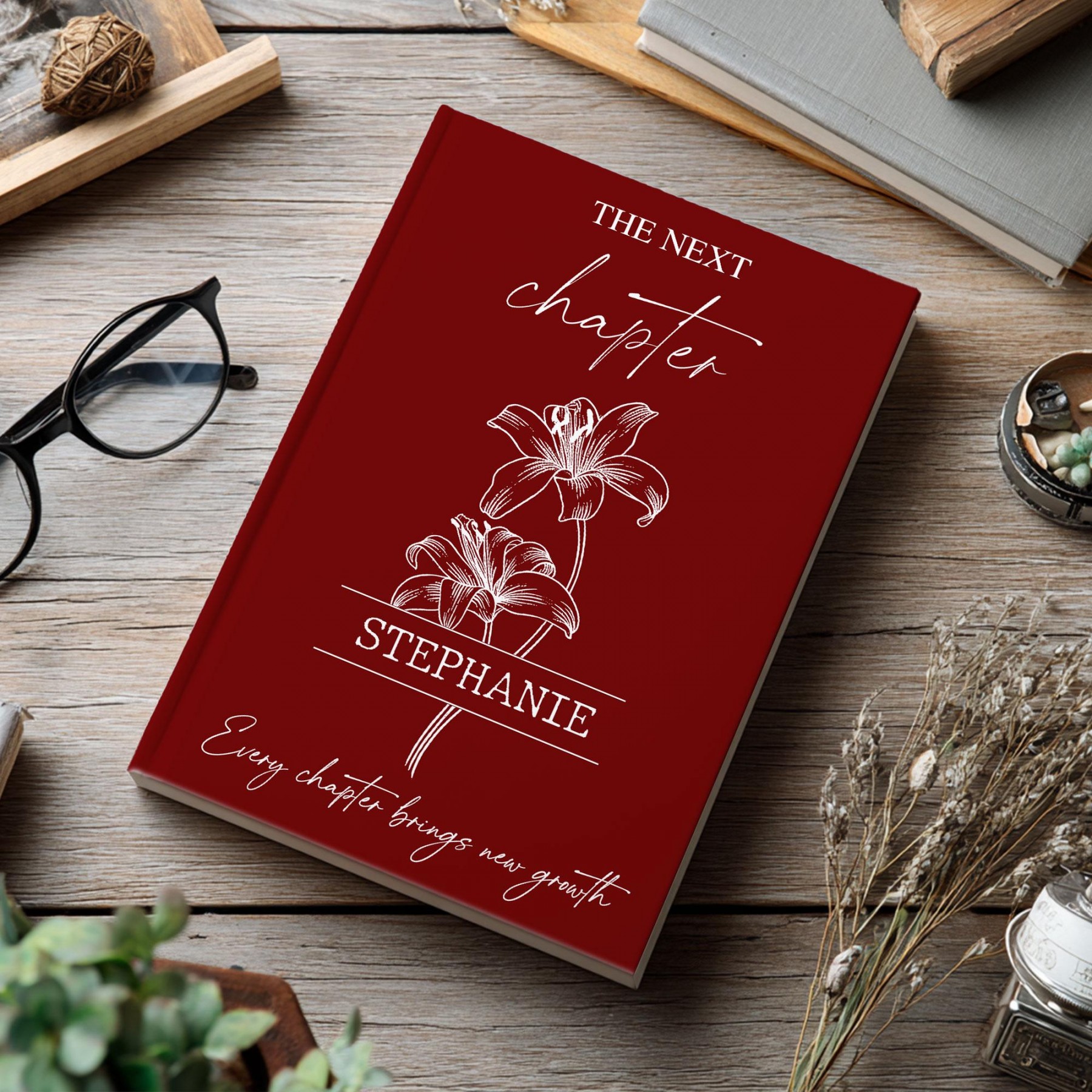 Personalized college graduation journal — a timeless keepsake to honor a university graduate’s next chapter. This custom hardcover notebook features the graduate’s name, choice of flower, color, and optional custom back message, making it a meaningful and lasting graduation gift.