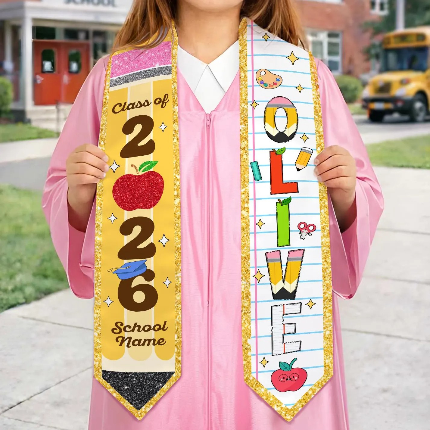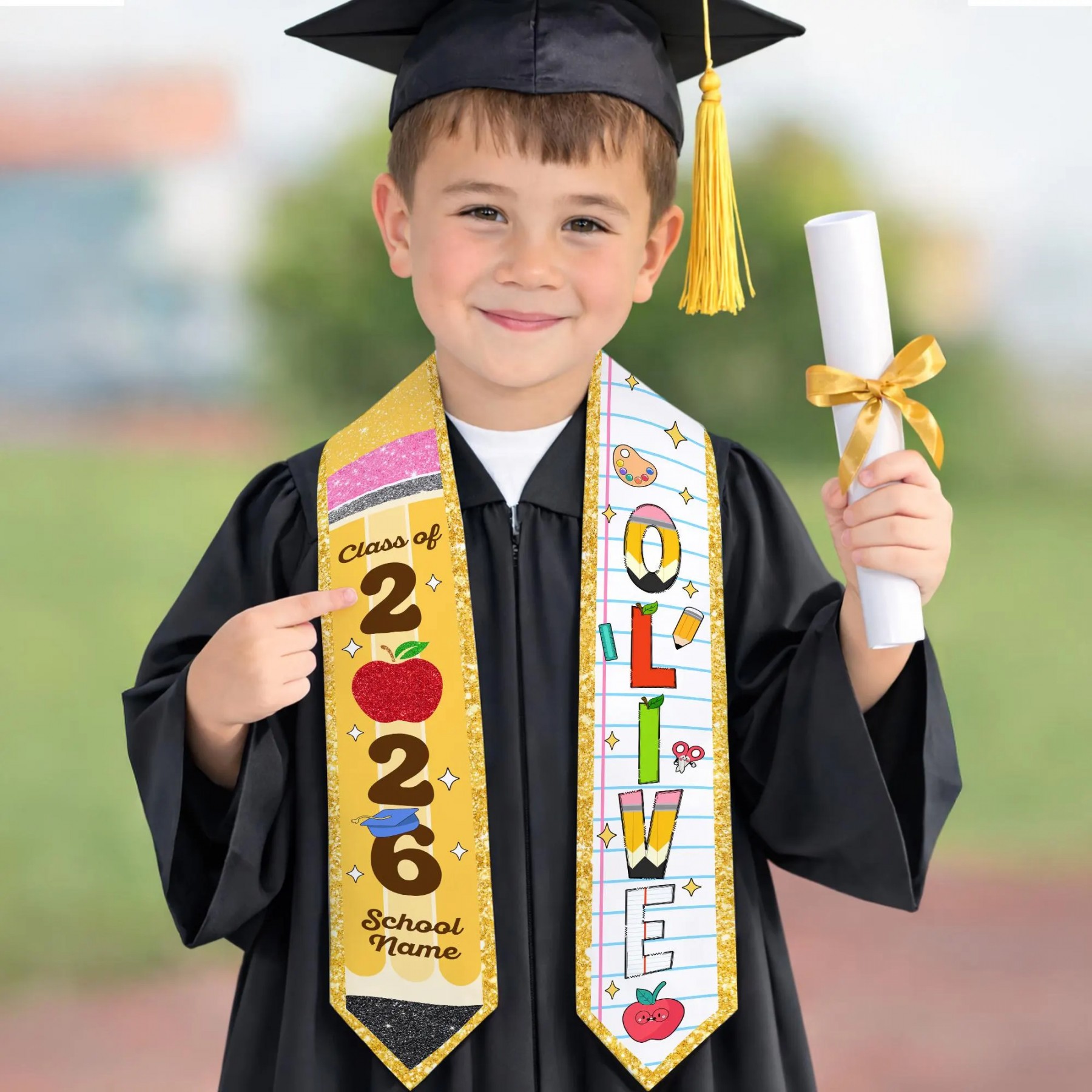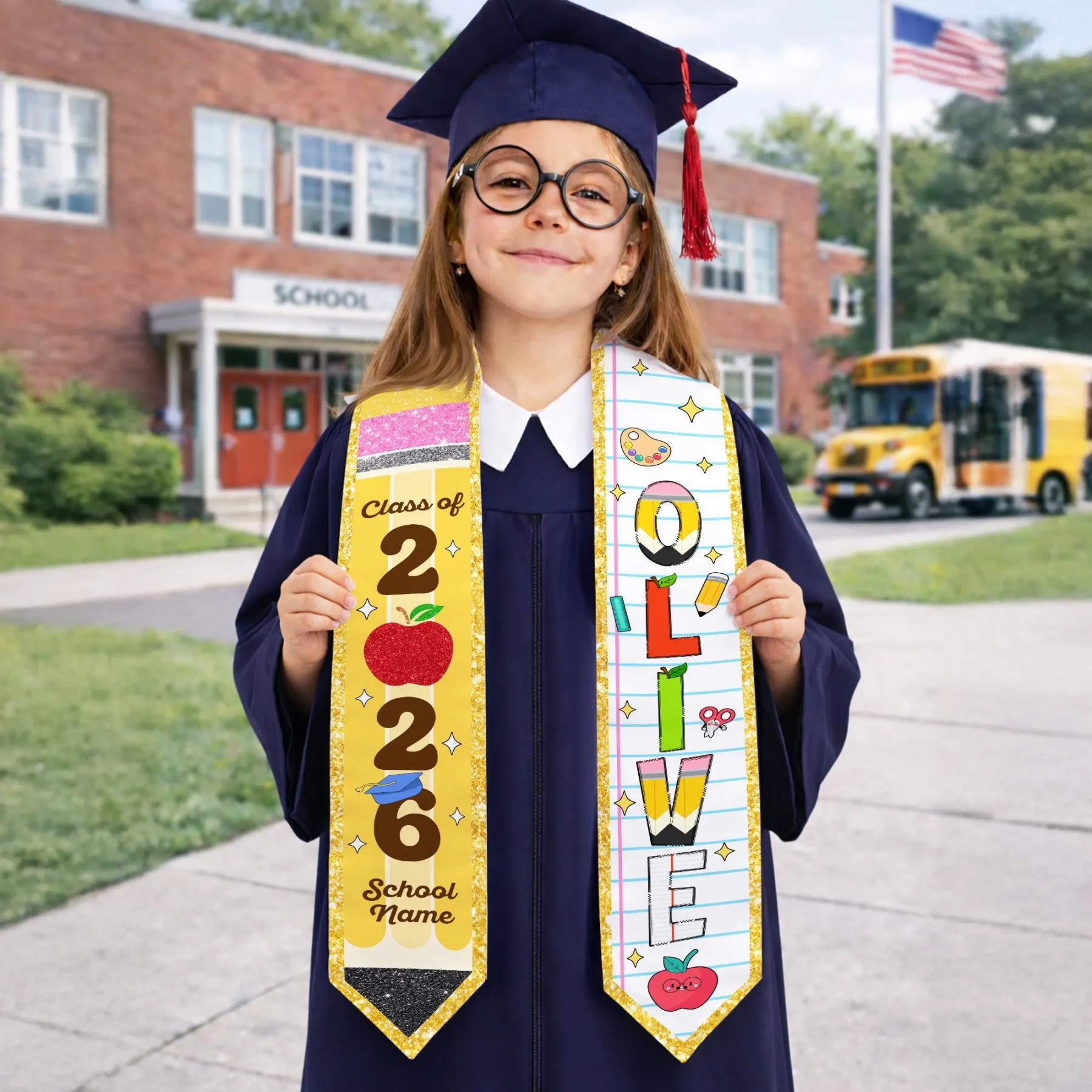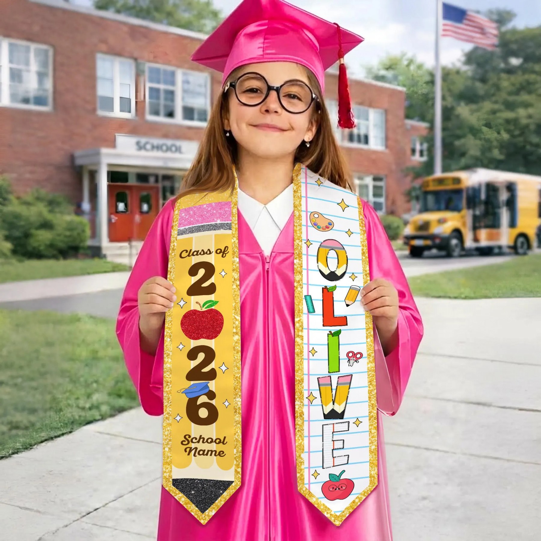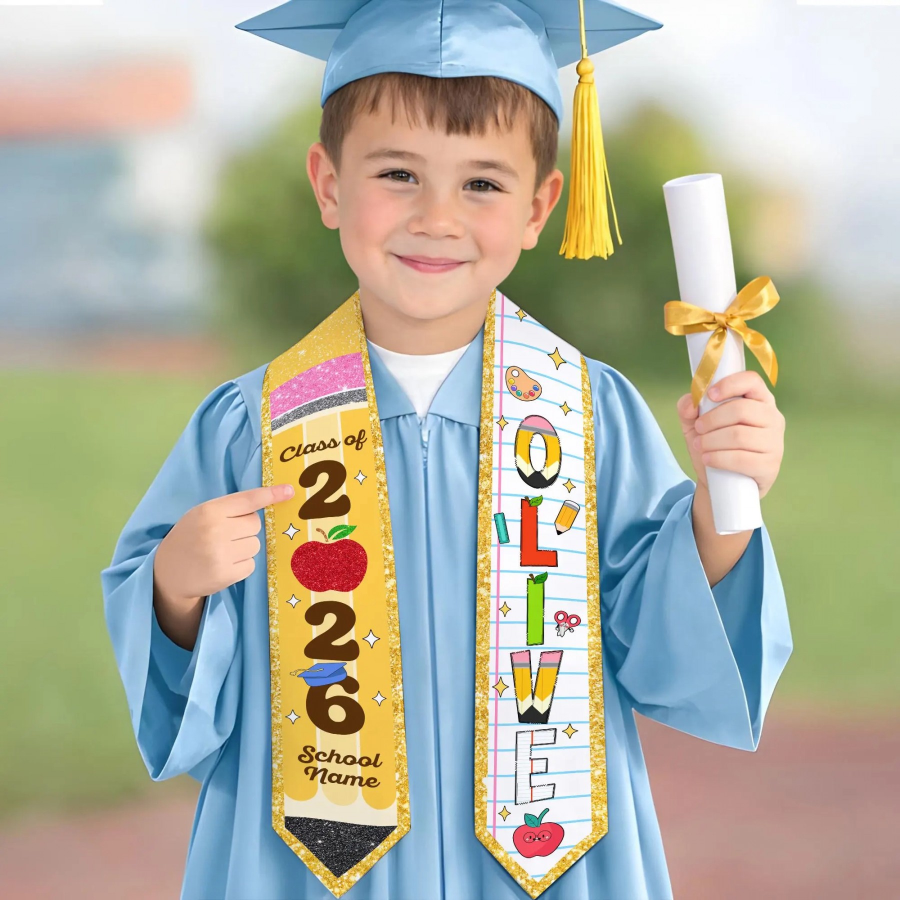 Custom Name Kid Kindergarten Class of 2026 Graduation Stole