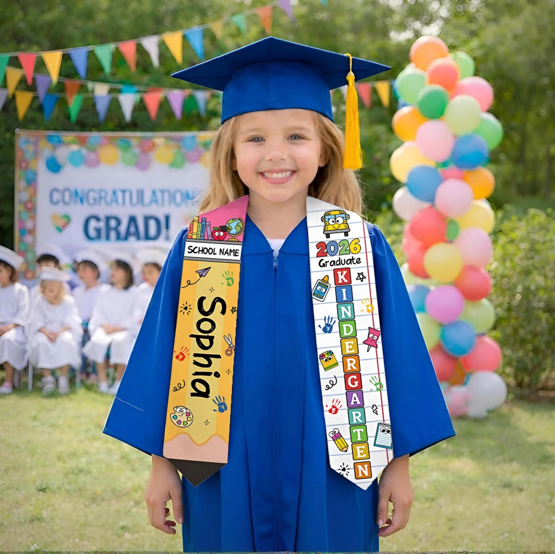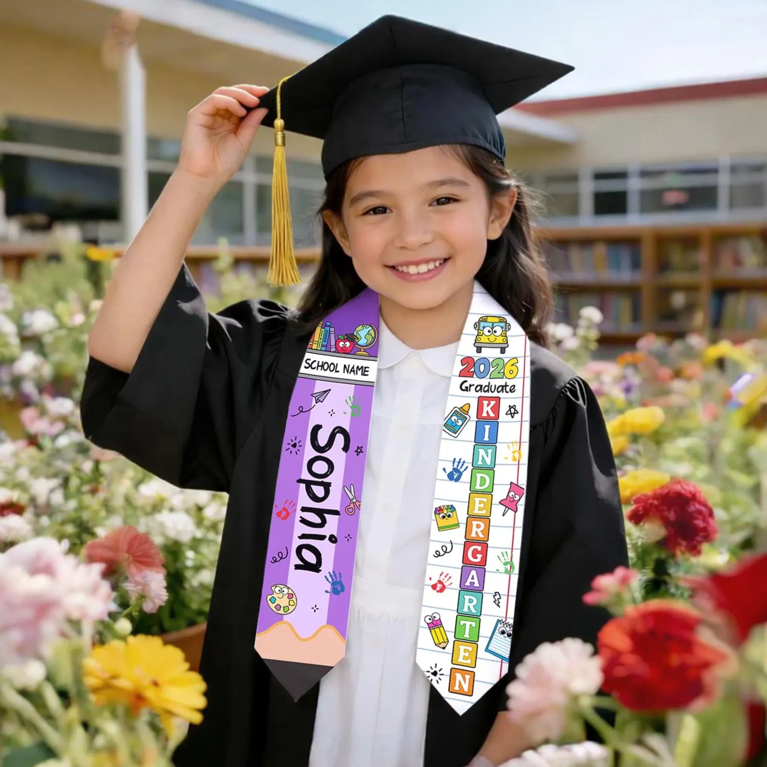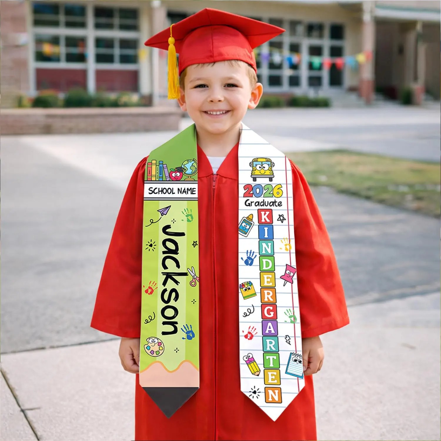 Custom Name Kid Kindergarten Class of 2026 Graduation Stole