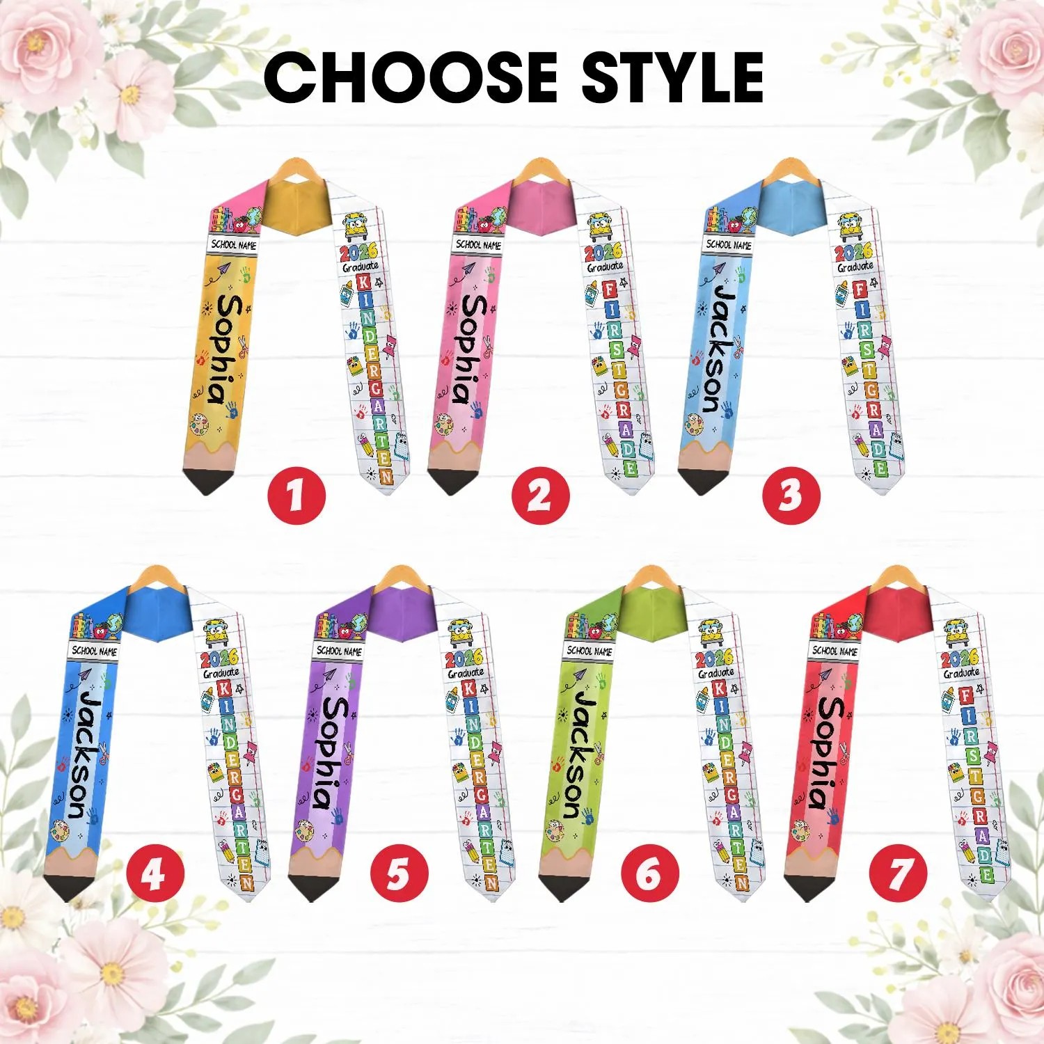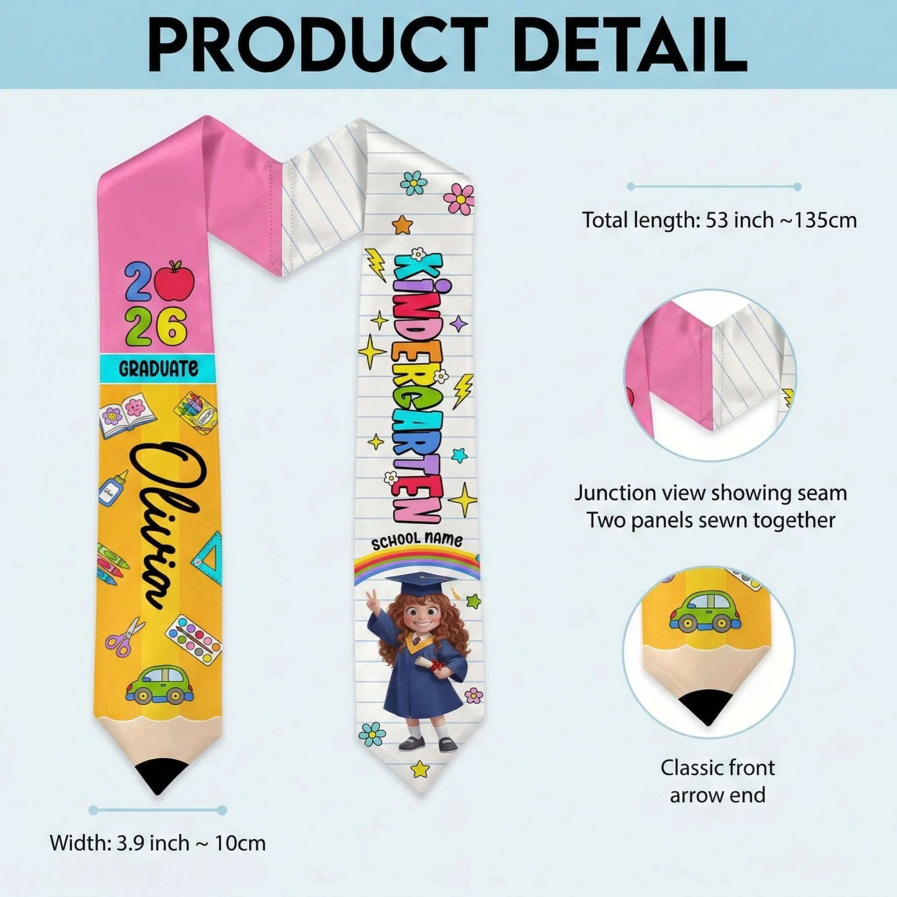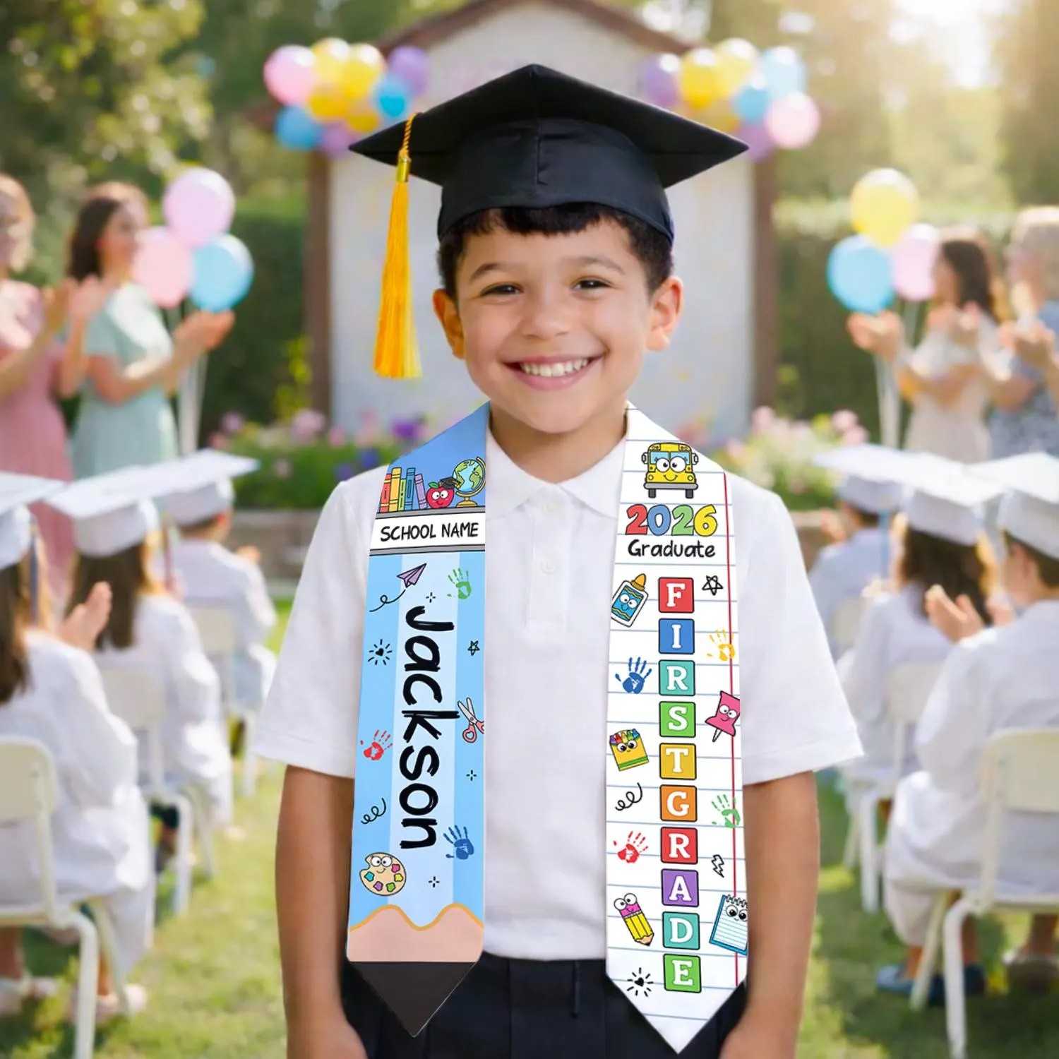 Custom Name Kid Kindergarten Class of 2026 Graduation Stole