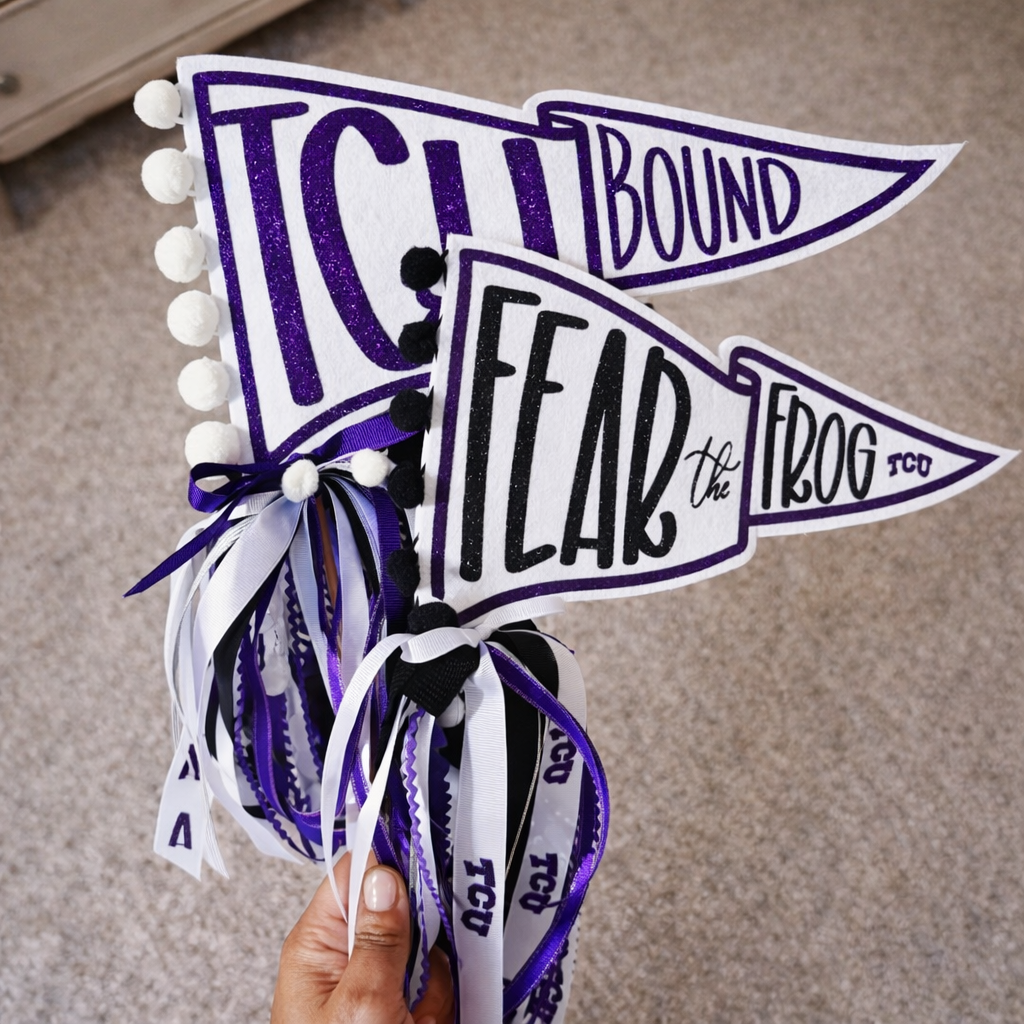 Please note: Ribbon colors are thoughtfully selected to match the lettering and accent lines of the pennant.