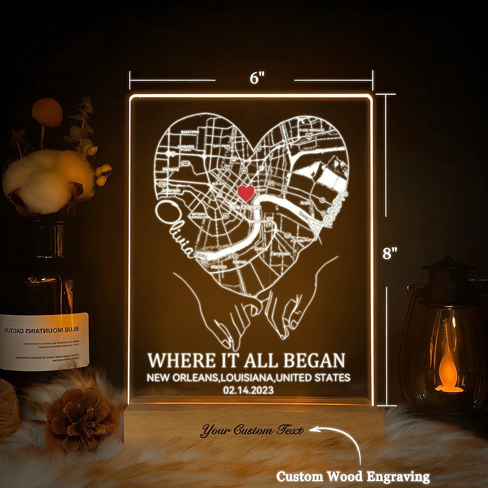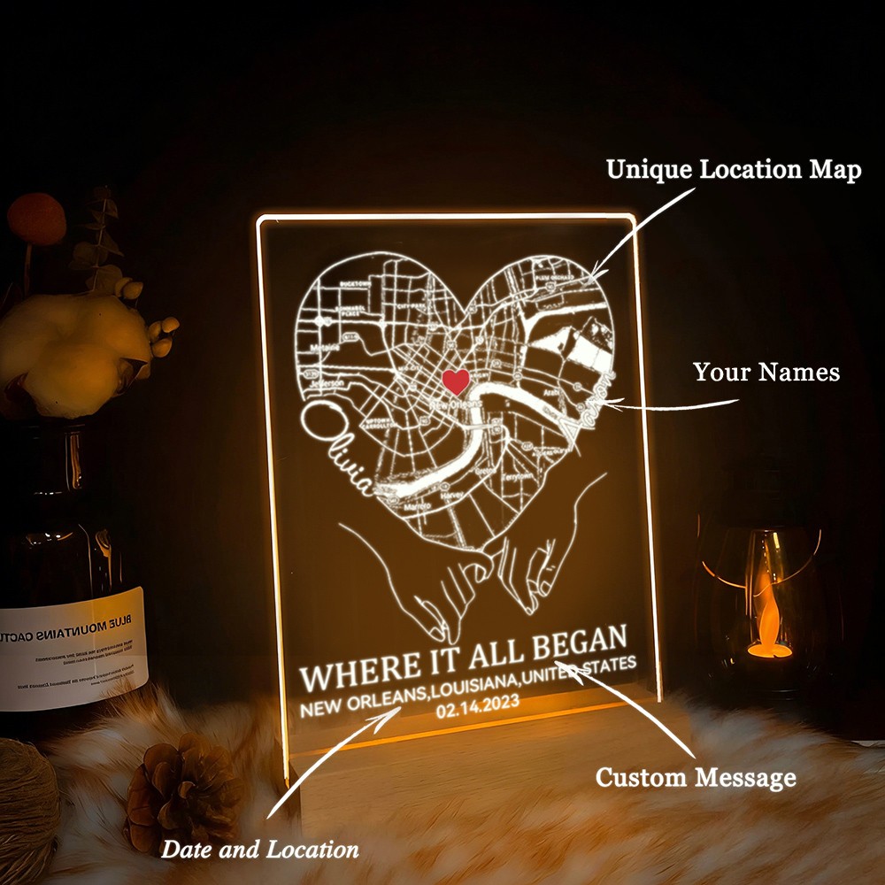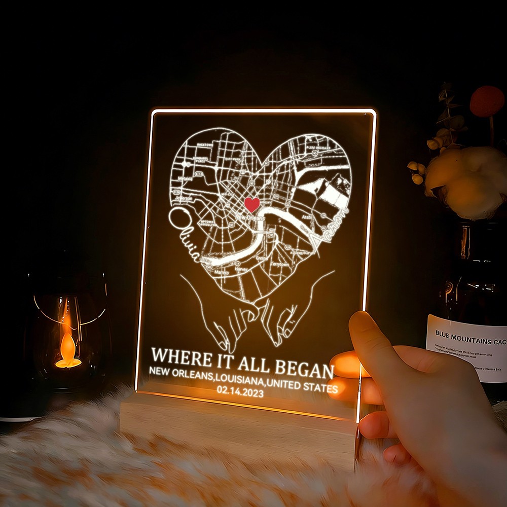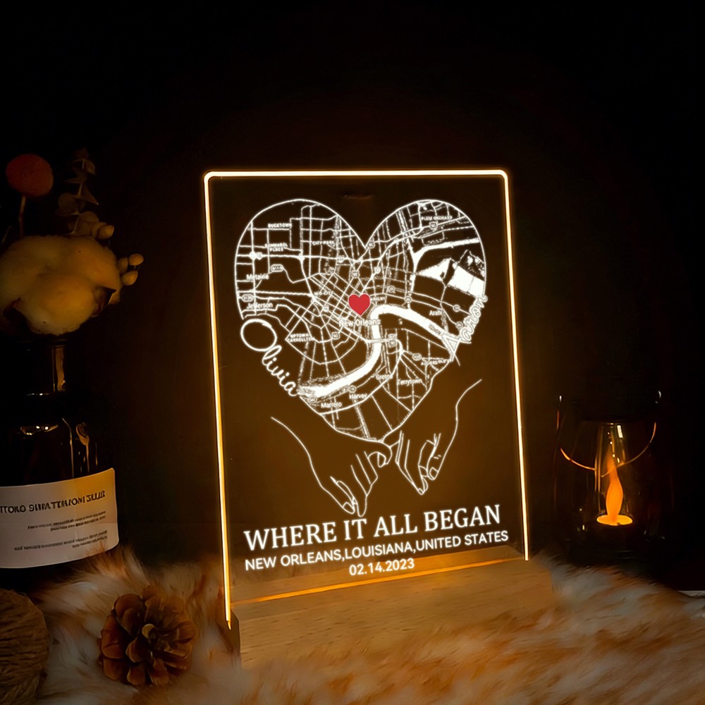 Custom Where It All Began Acrylic Map Night Light for Couple