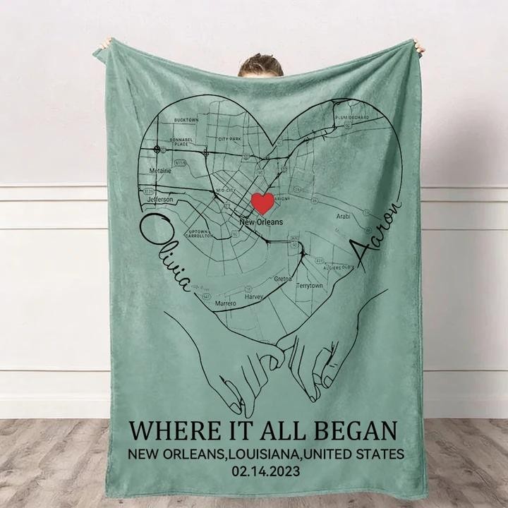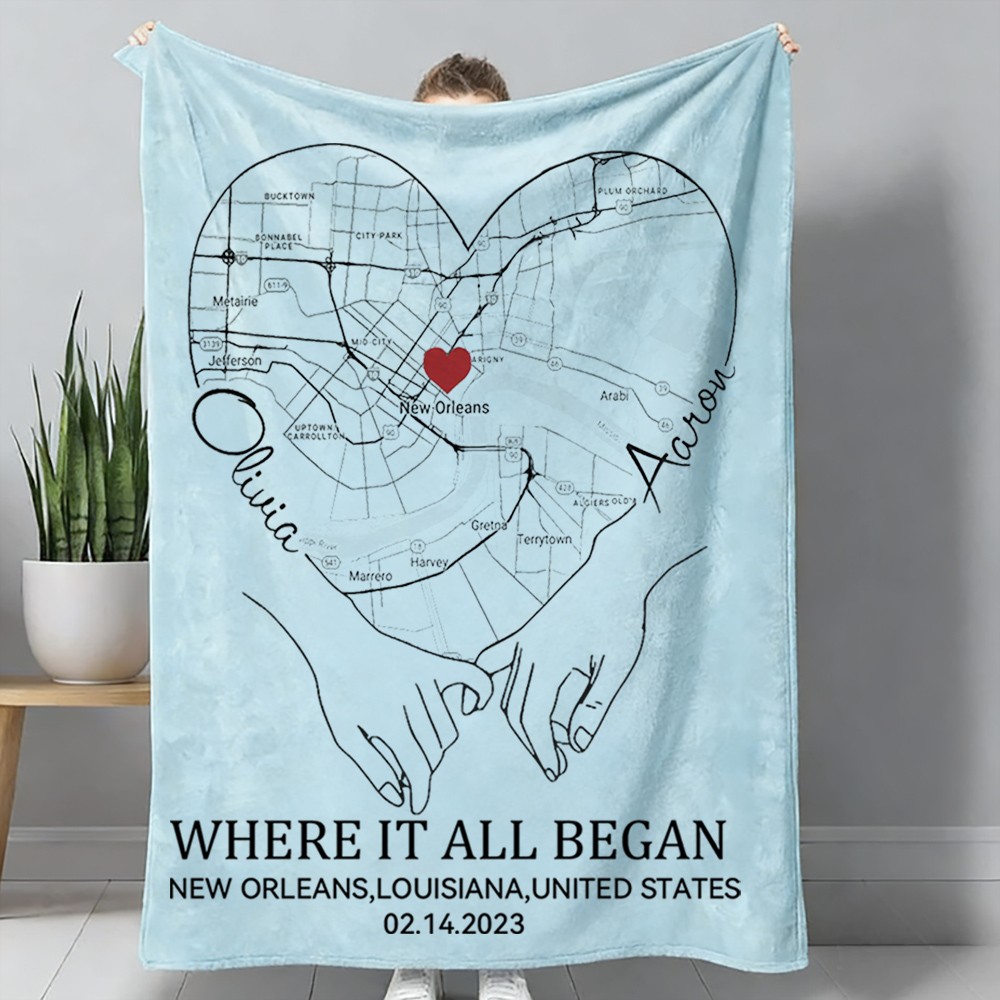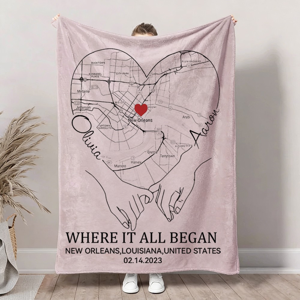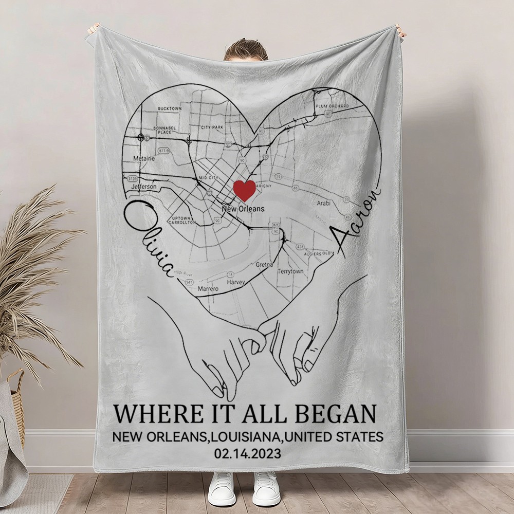 Custom Where It All Began Love City Map Blanket for Couple