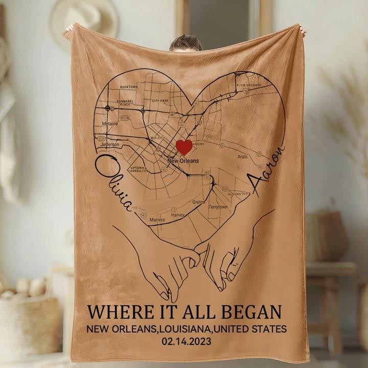 Custom Where It All Began Love City Map Blanket for Couple is a personalized keepsake designed to celebrate the place where your love story began. Customize the blanket with a meaningful city map, coordinates, names, and a special date to create a timeless and heartfelt gift for couples, anniversaries, weddings, or Valentine’s Day.