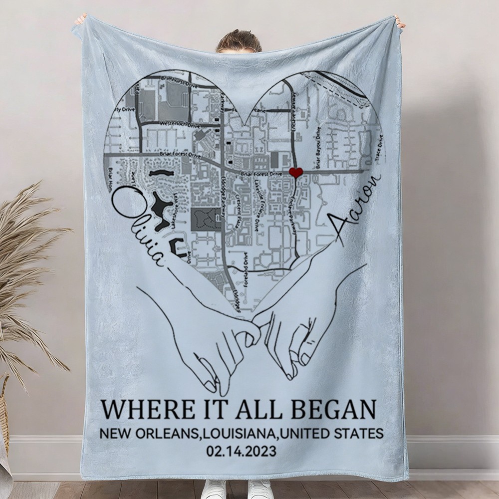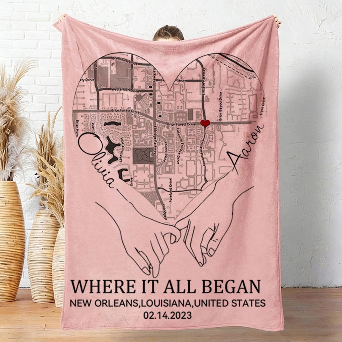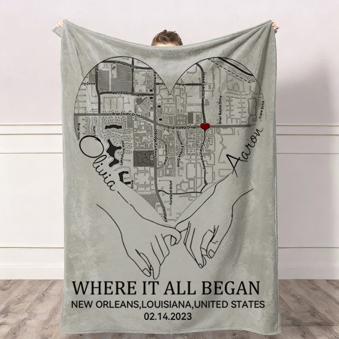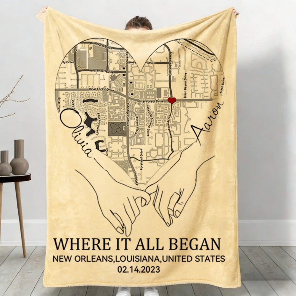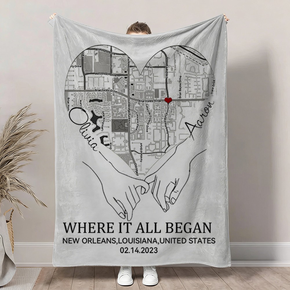 Custom Where It All Began Love City Map Blanket for Couple is a personalized keepsake designed to celebrate the place where your love story began. Customize the blanket with a meaningful city map, coordinates, names, and a special date to create a timeless and heartfelt gift for couples, anniversaries, weddings, or Valentine’s Day.
