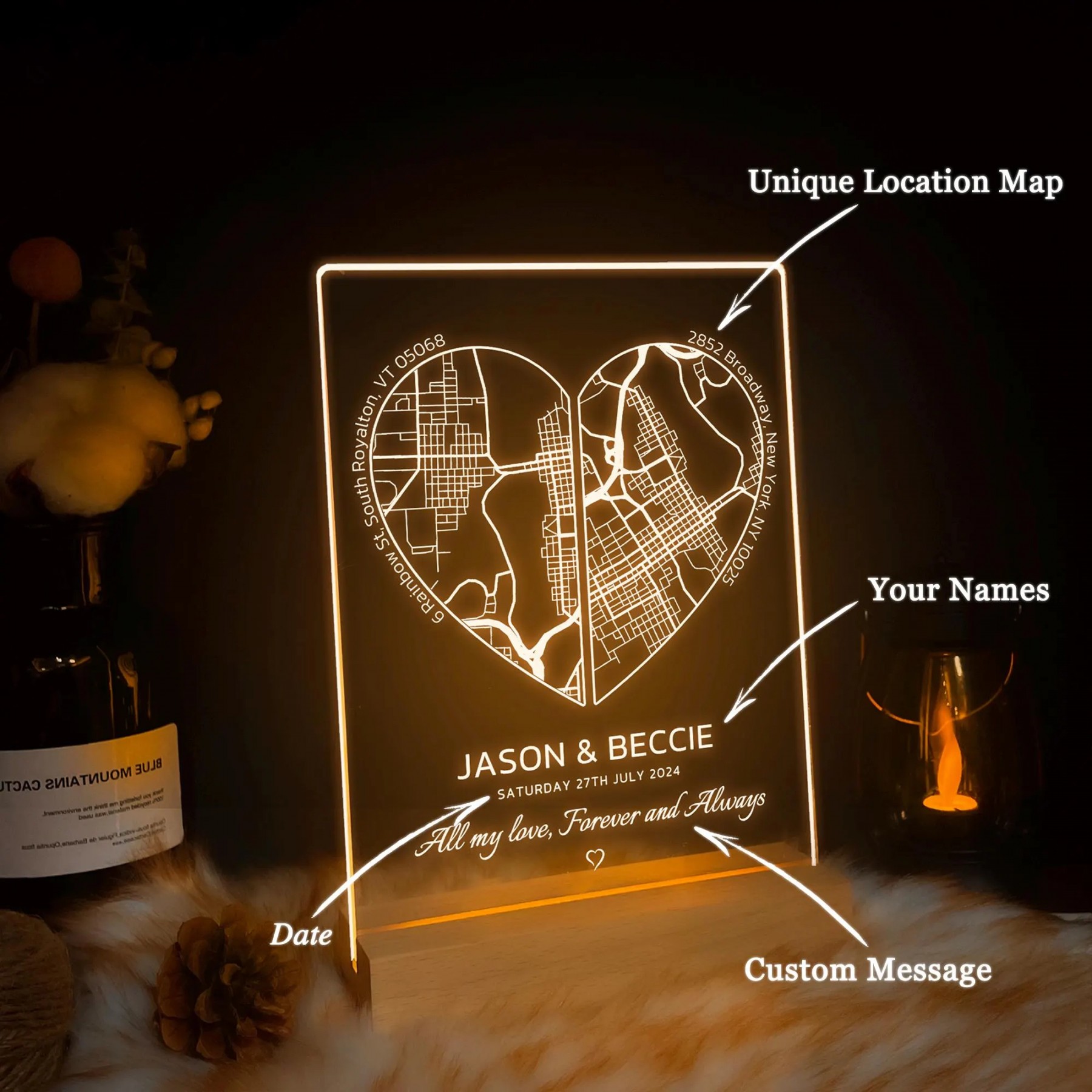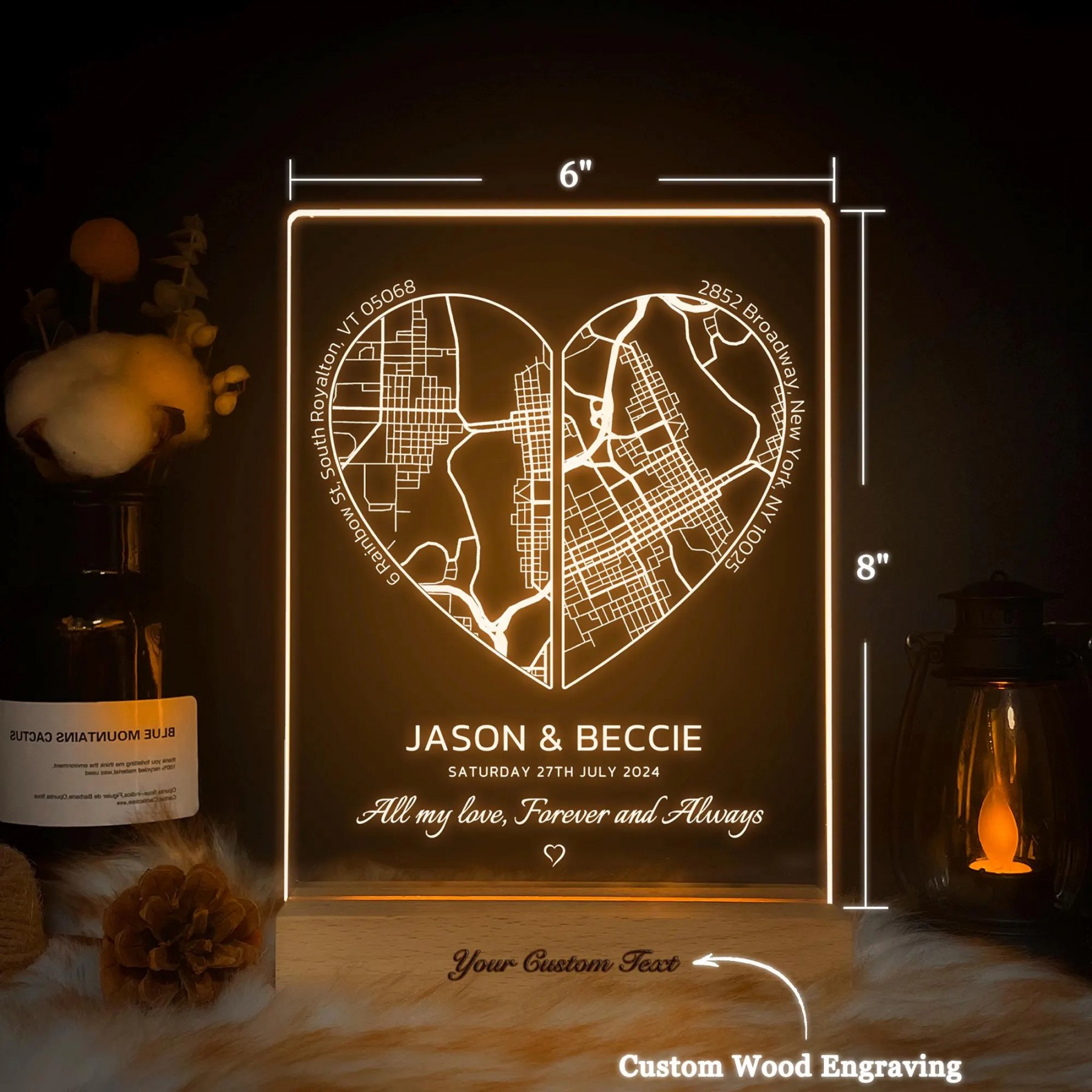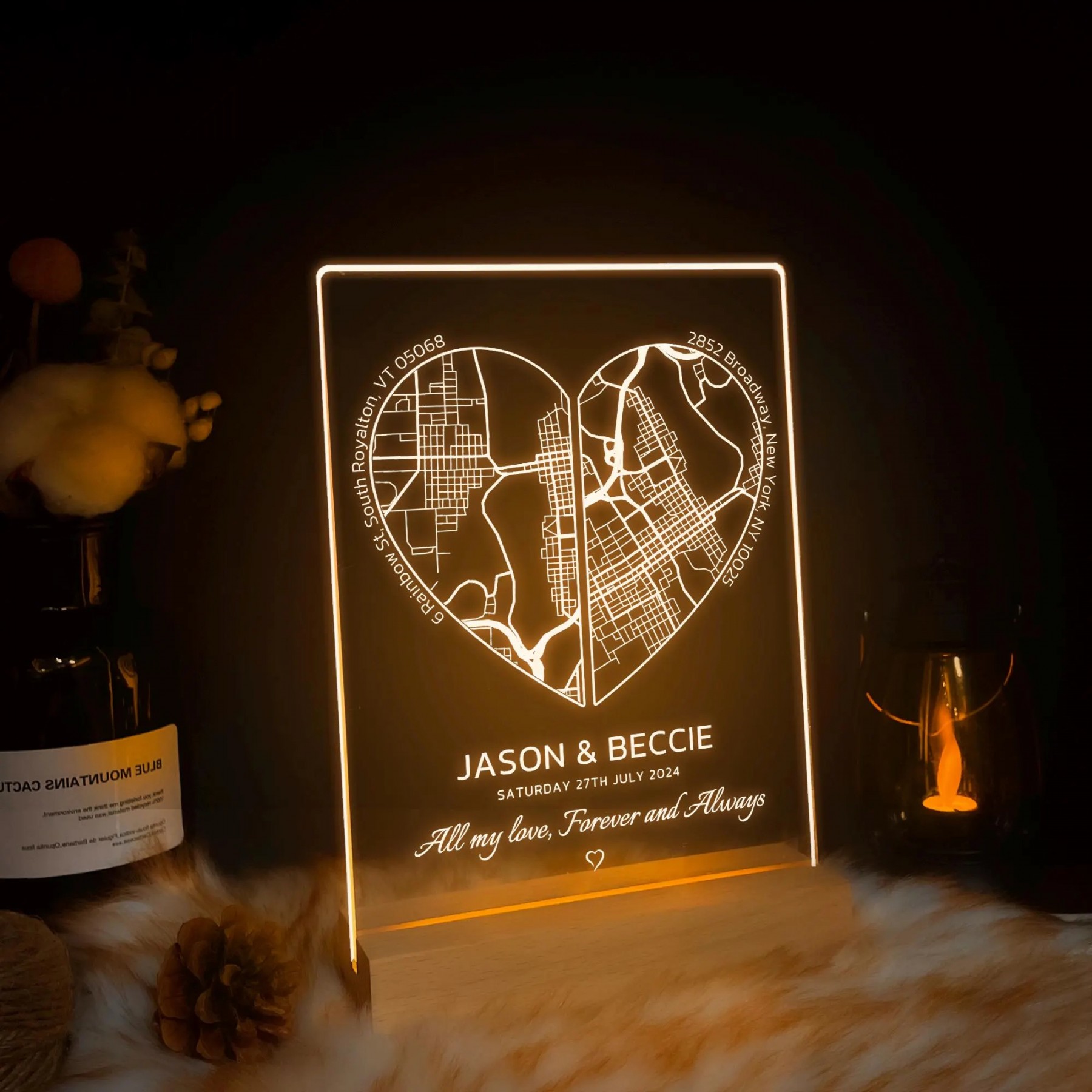 Custom All My Love Forever and Always Acrylic Map Night Light