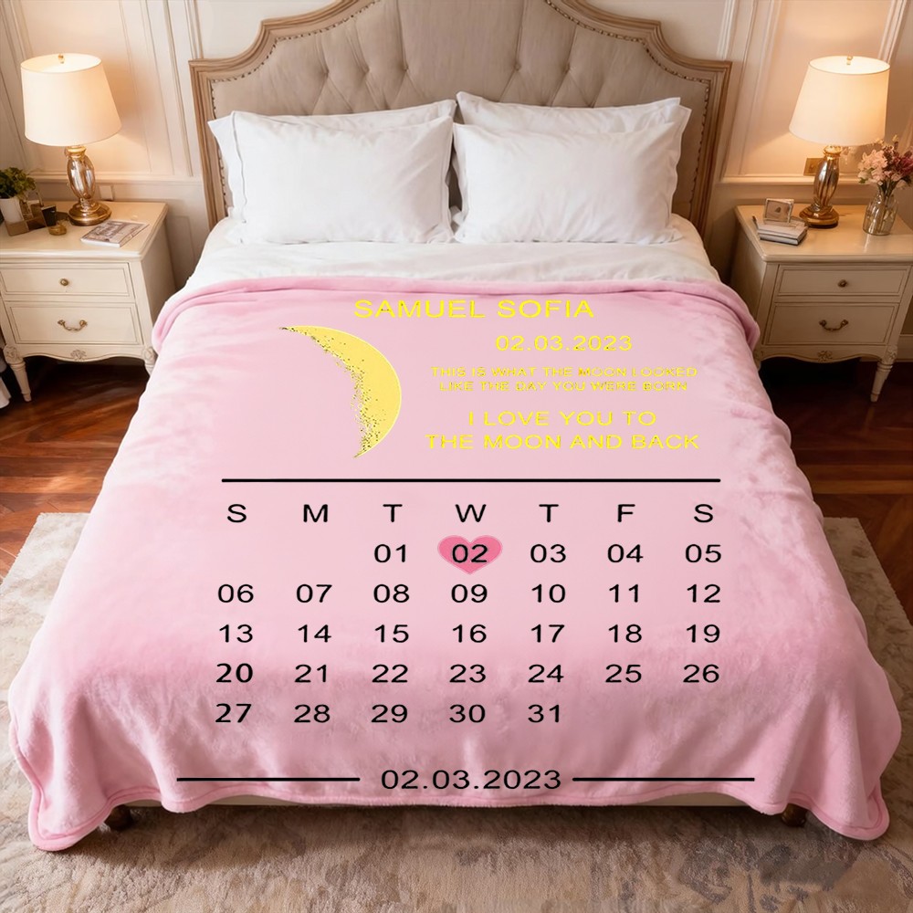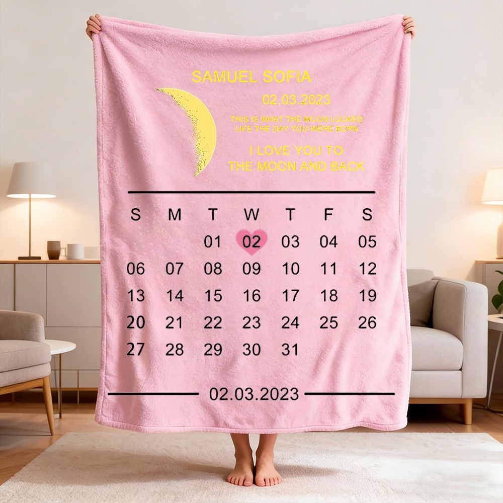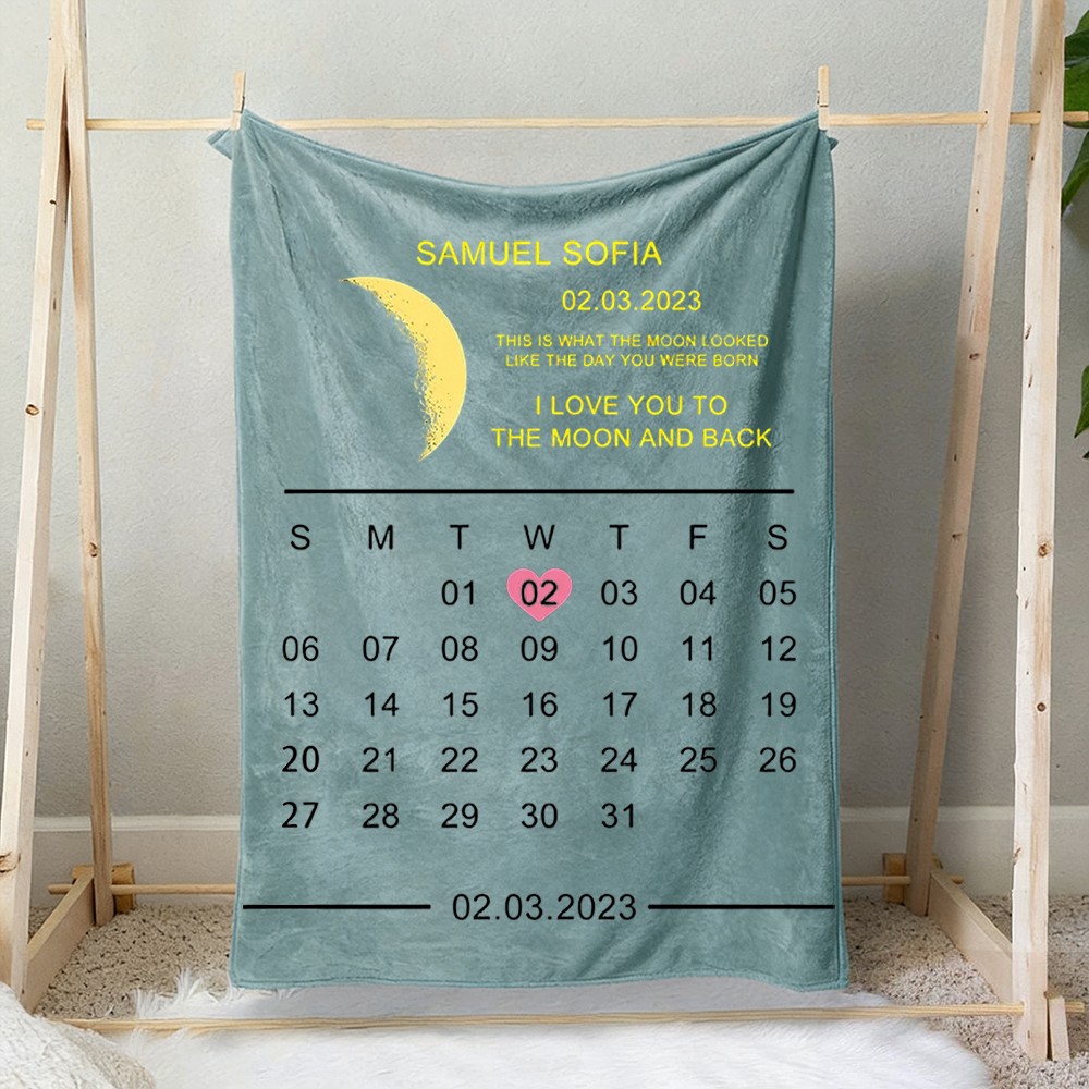 Celebrate love and precious memories with our unique Custom Moon Phase Blanket. This isn't just a blanket; it's a personalized piece of the night sky, capturing the exact moon phase from your most significant date.