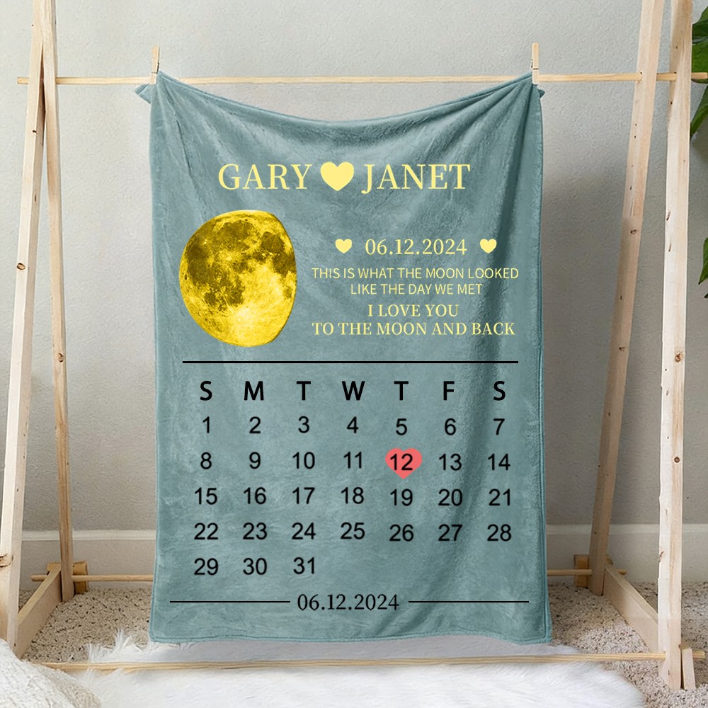 Celebrate love and precious memories with our unique Custom Moon Phase Blanket. This isn't just a blanket; it's a personalized piece of the night sky, capturing the exact moon phase from your most significant date.