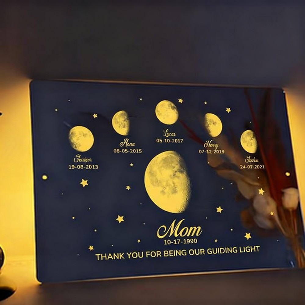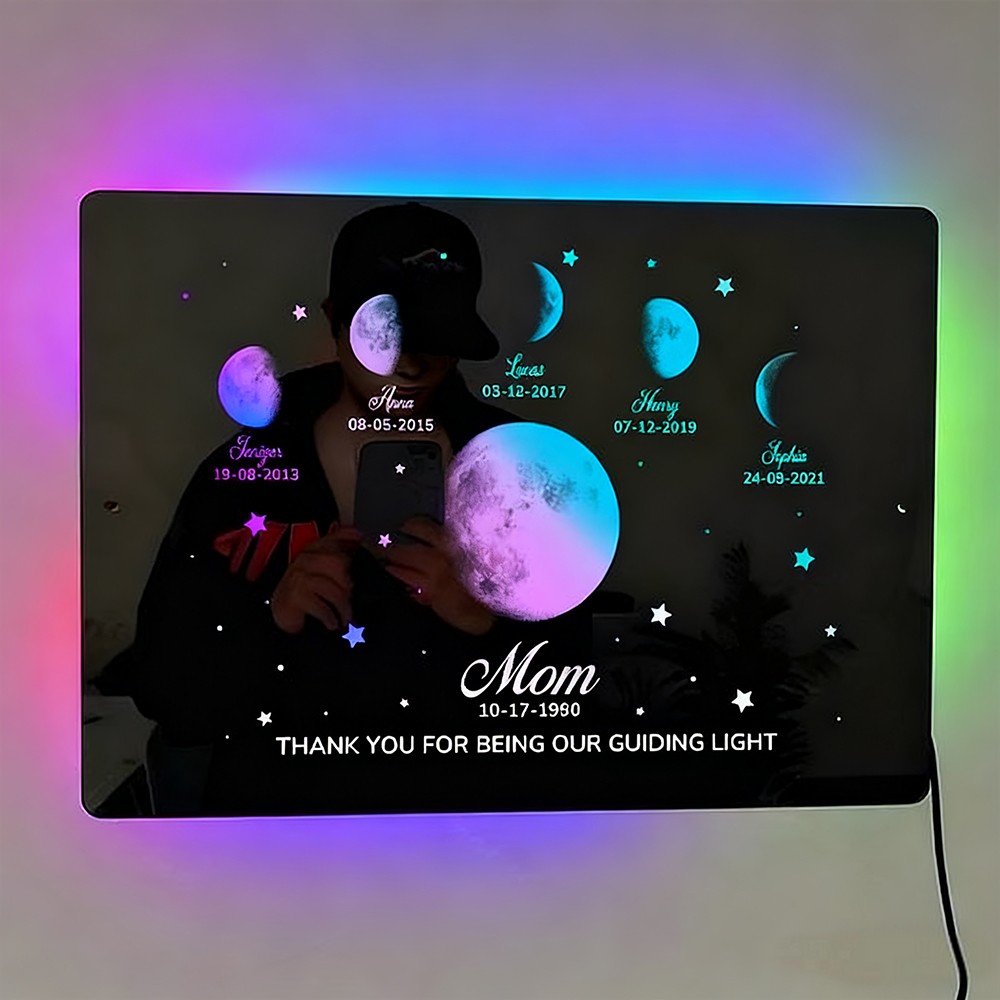 Mom's Exclusive Galaxy Mirror Lamp - Customized Moon Phases for Kids and Moms