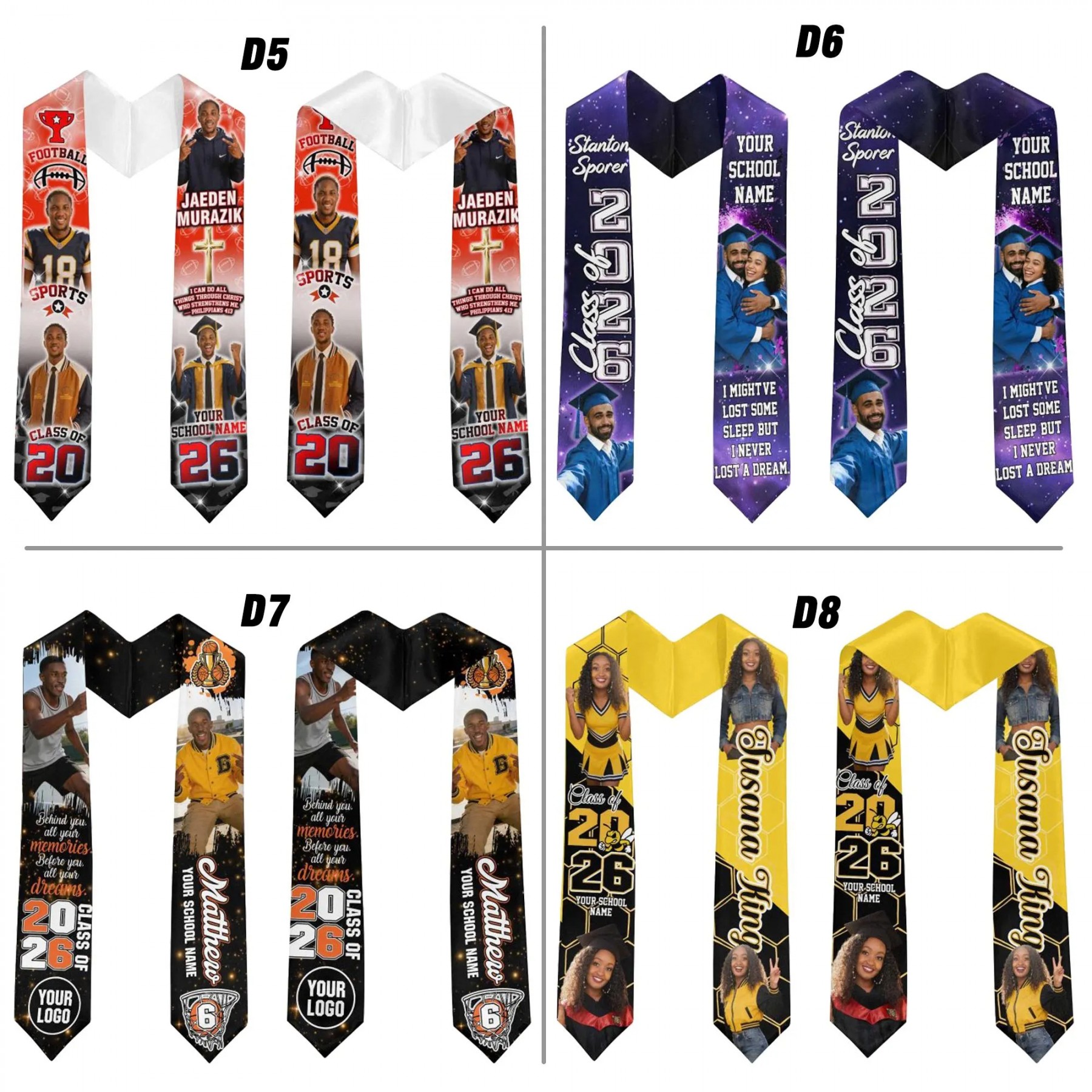 Your custom stole keeps all your important moments together in one beautiful piece – perfect for graduation photos, ceremonies, and celebrating this important milestone.