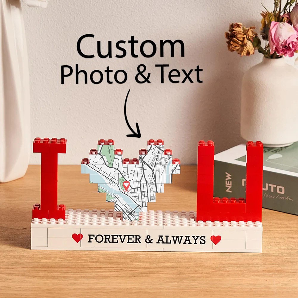 Personalized Map Print Building Brick Puzzle Valentine's Gifts For Her