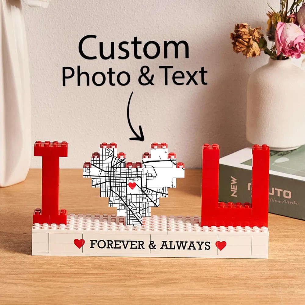 Personalized Map Print Building Brick Puzzle Valentine's Gifts For Her