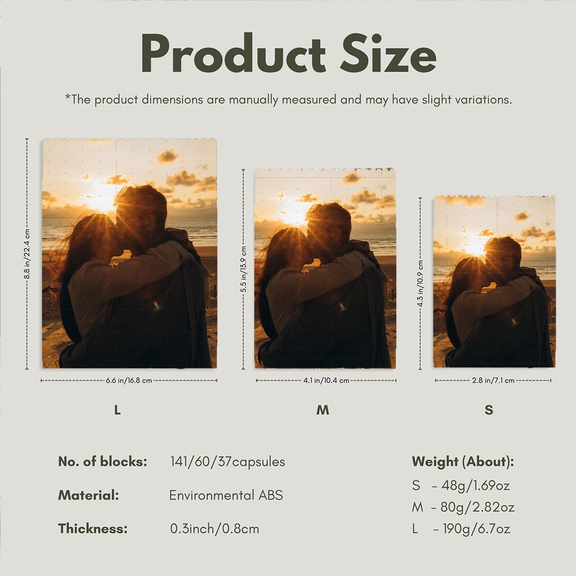 This building block set is more than just a decoration; it's a beautiful memory you can build together. The blocks are printed with your personalized map photos, showcasing places that hold special meaning for you, perfectly illustrating the beginning or development of your love story. This meaningful Valentine's Day gift transforms a special location into an eternal symbol of love.