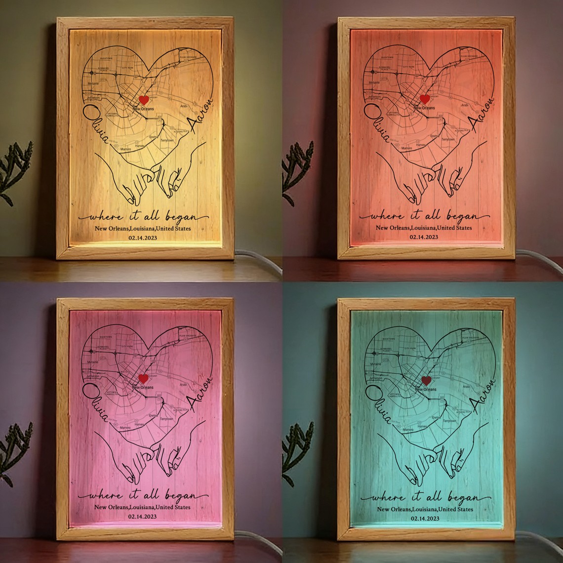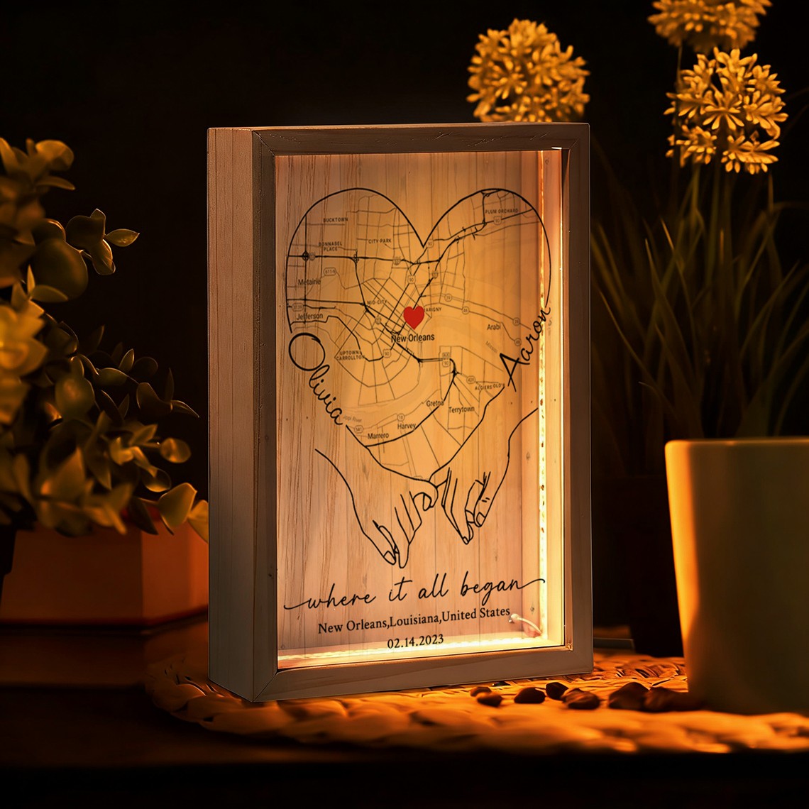 Personalized Where It All Began Map Light Box for Couple