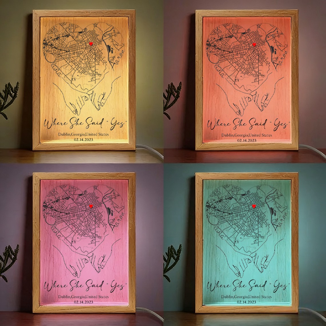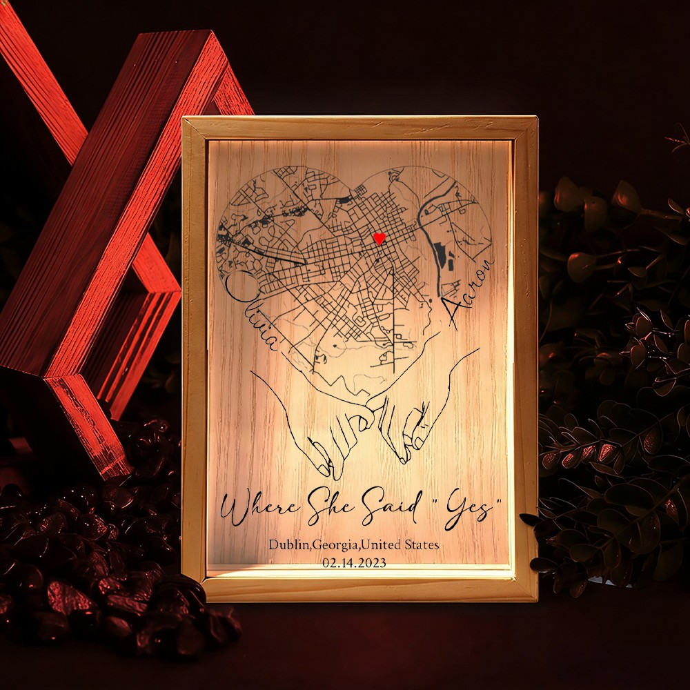 Personalized Where She Said Yes Map Light Box for Couple