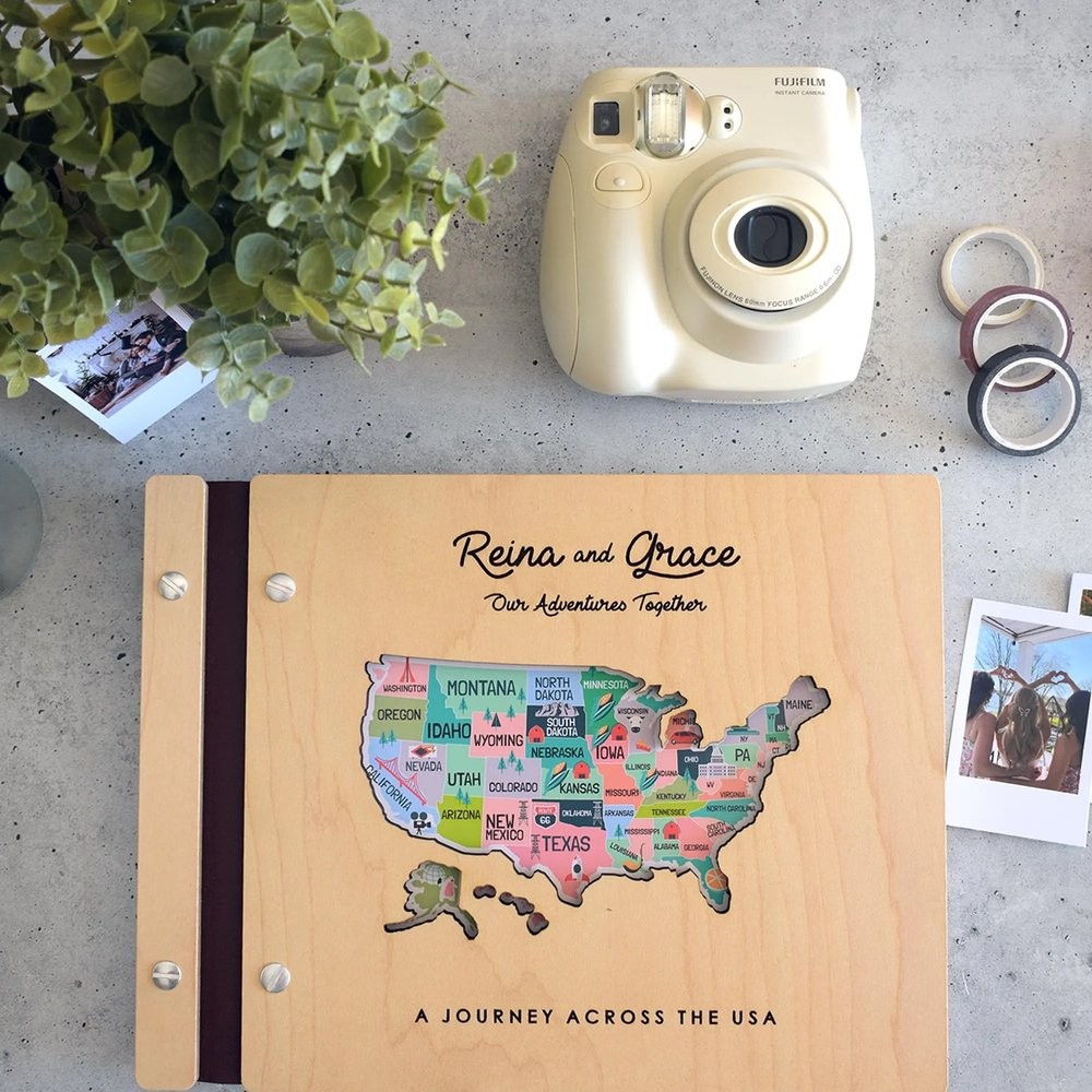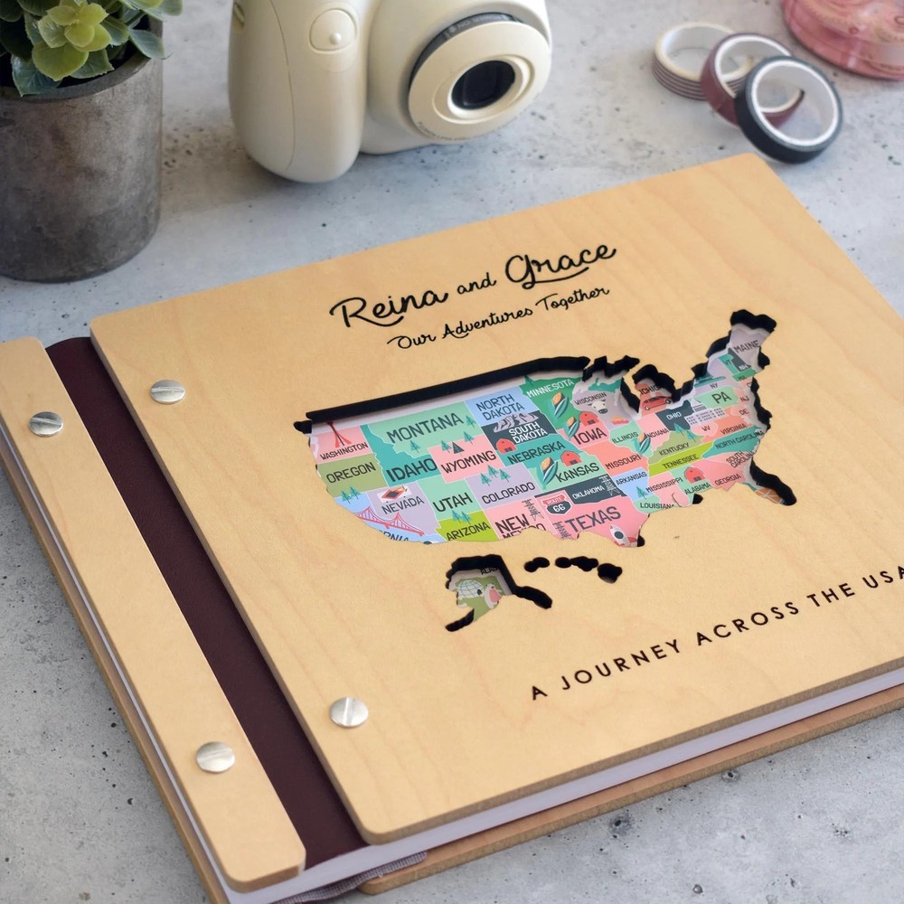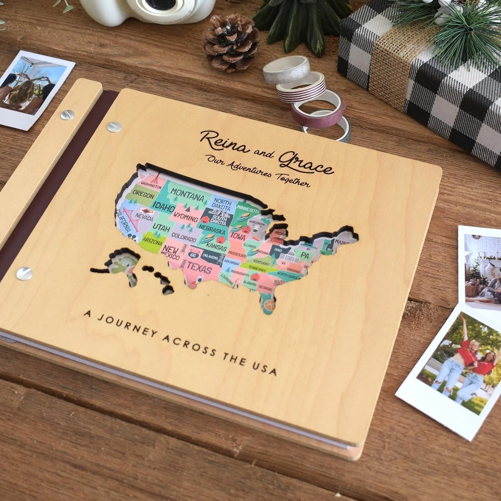 Personalized Wooden Travel Map Adventure Book Scrapbook Couples Travel Album Anniversary Gift Valentine's Gift Christmas Gift