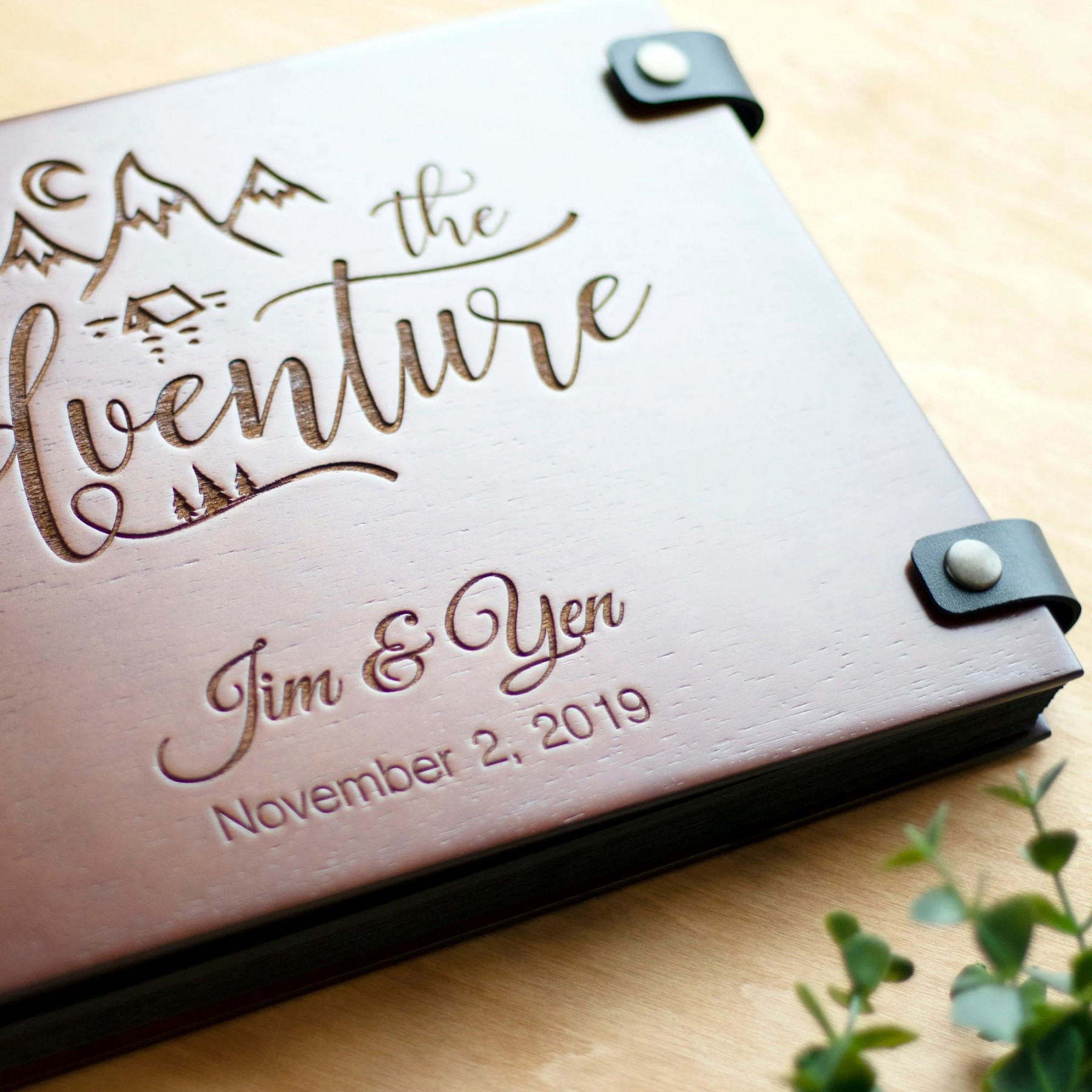 Personalized Wooden Travel Photo Album With Mountains Our Adventure Book Wedding Anniversary Gift For Couple