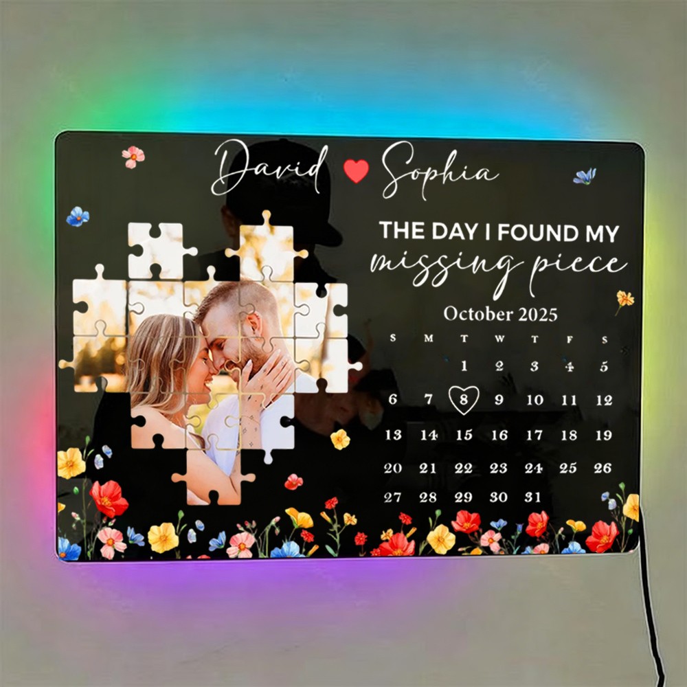 The Day I Found My Missing Piece Personalized Photo Mirror Lamp for Couples
